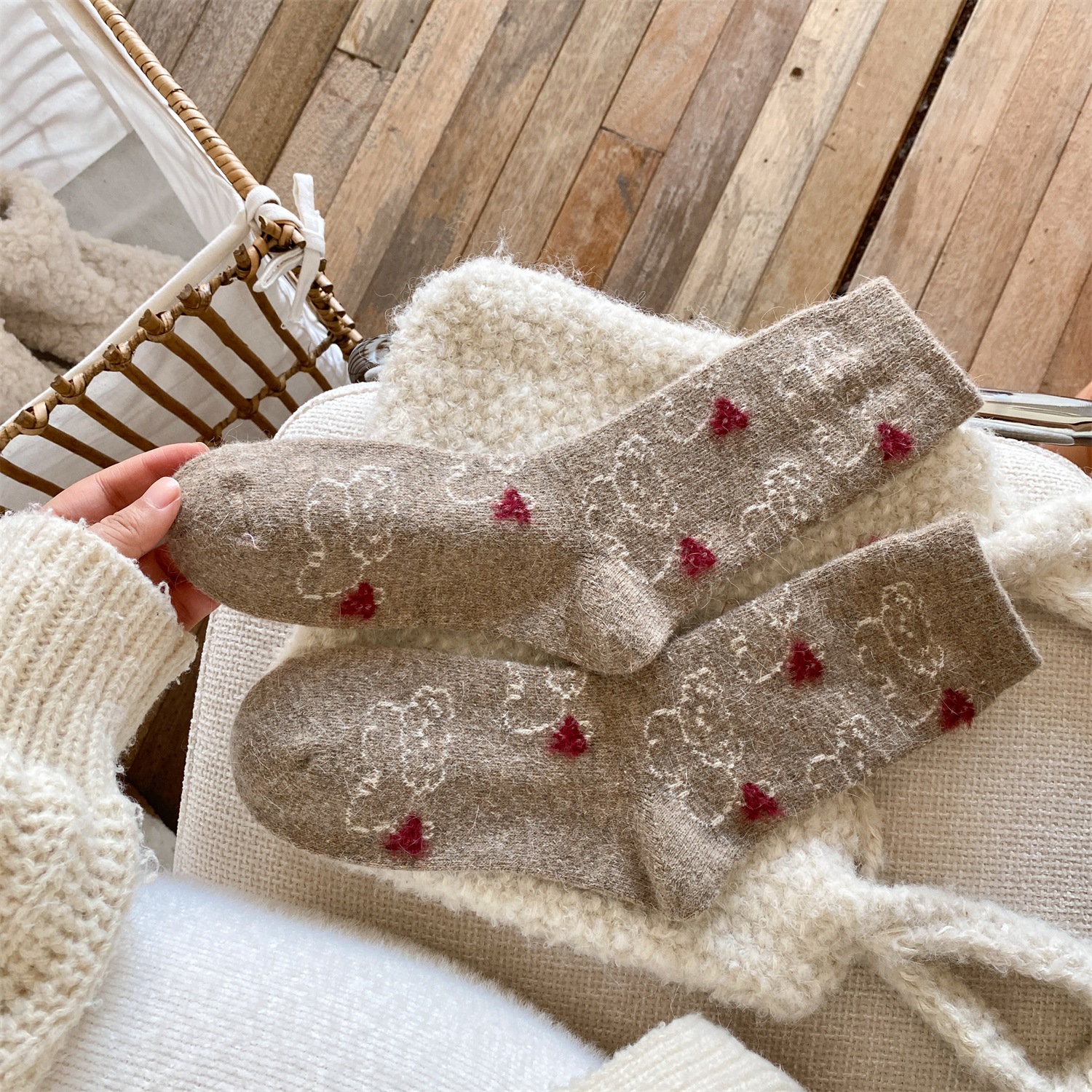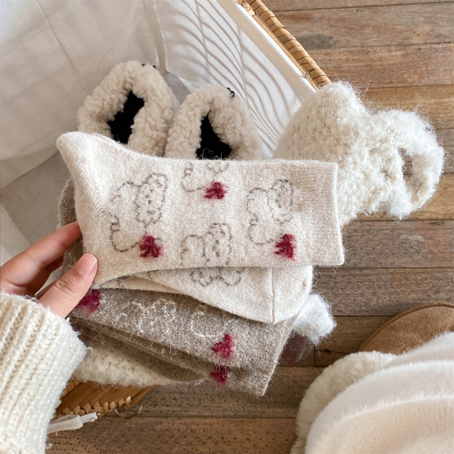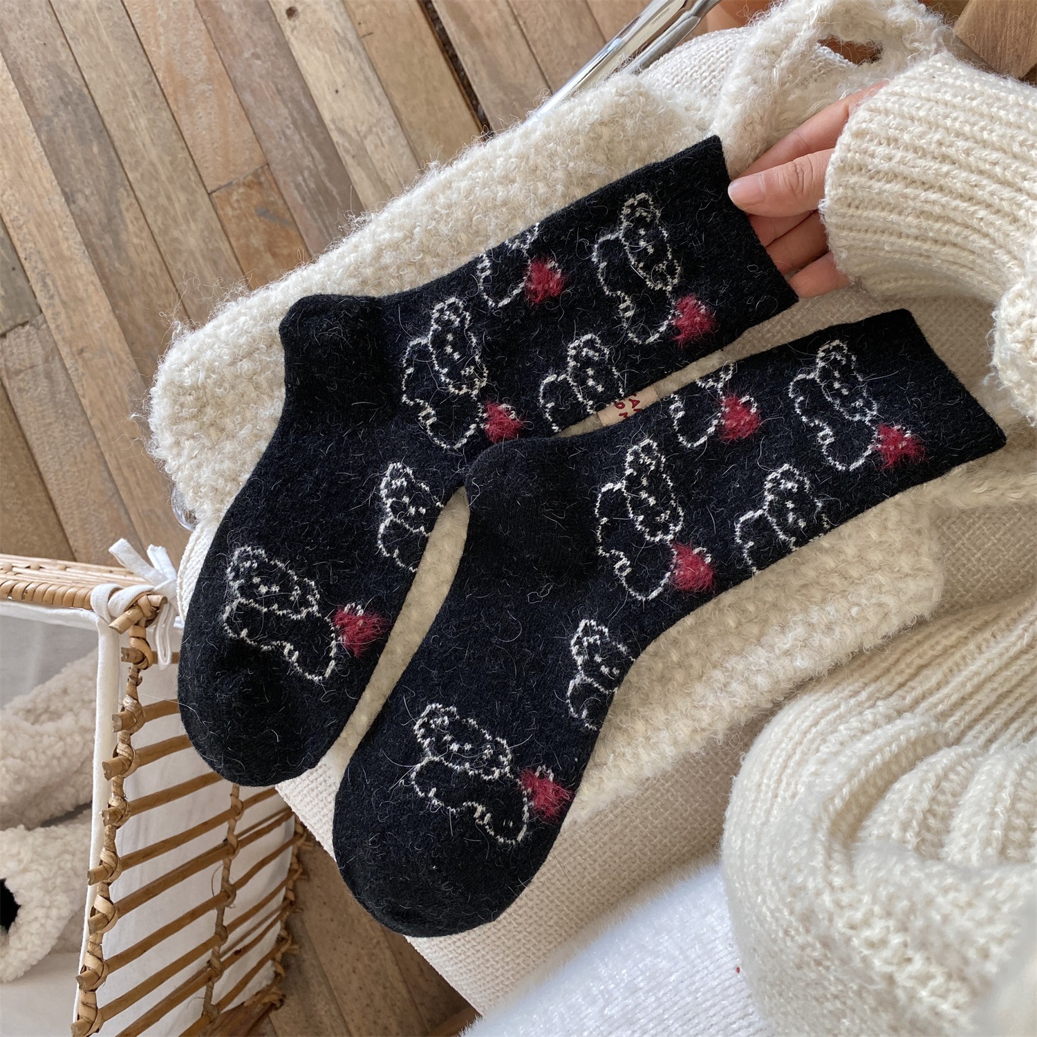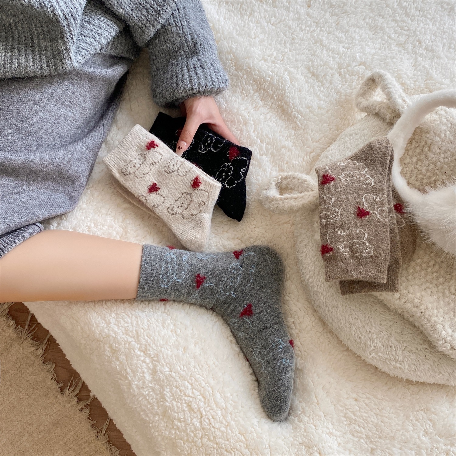 겨울 토끼 양모 양말 귀여운 만화 강아지 양말 여성의 중간 튜브 양말 가을과 겨울 두꺼운 따뜻한 일본 스타일 양모 양말