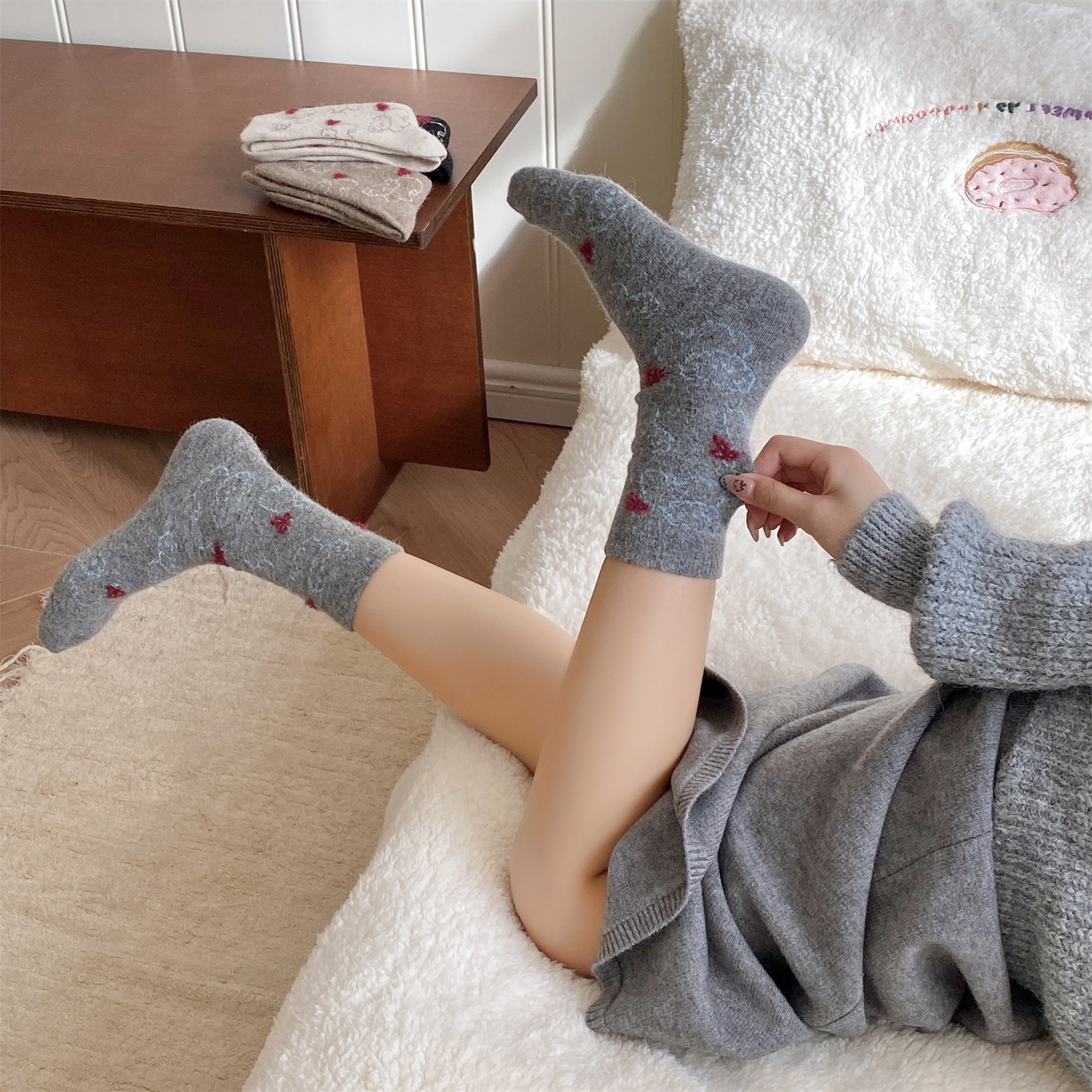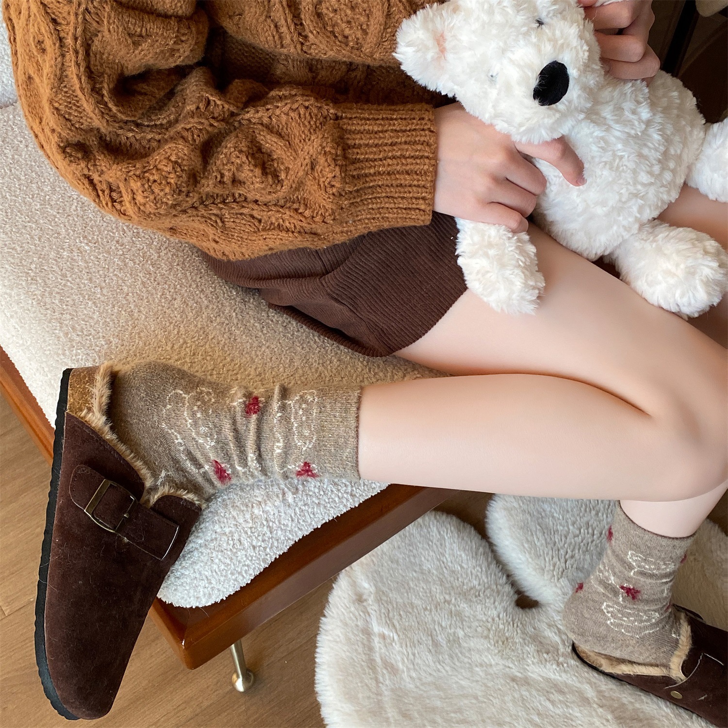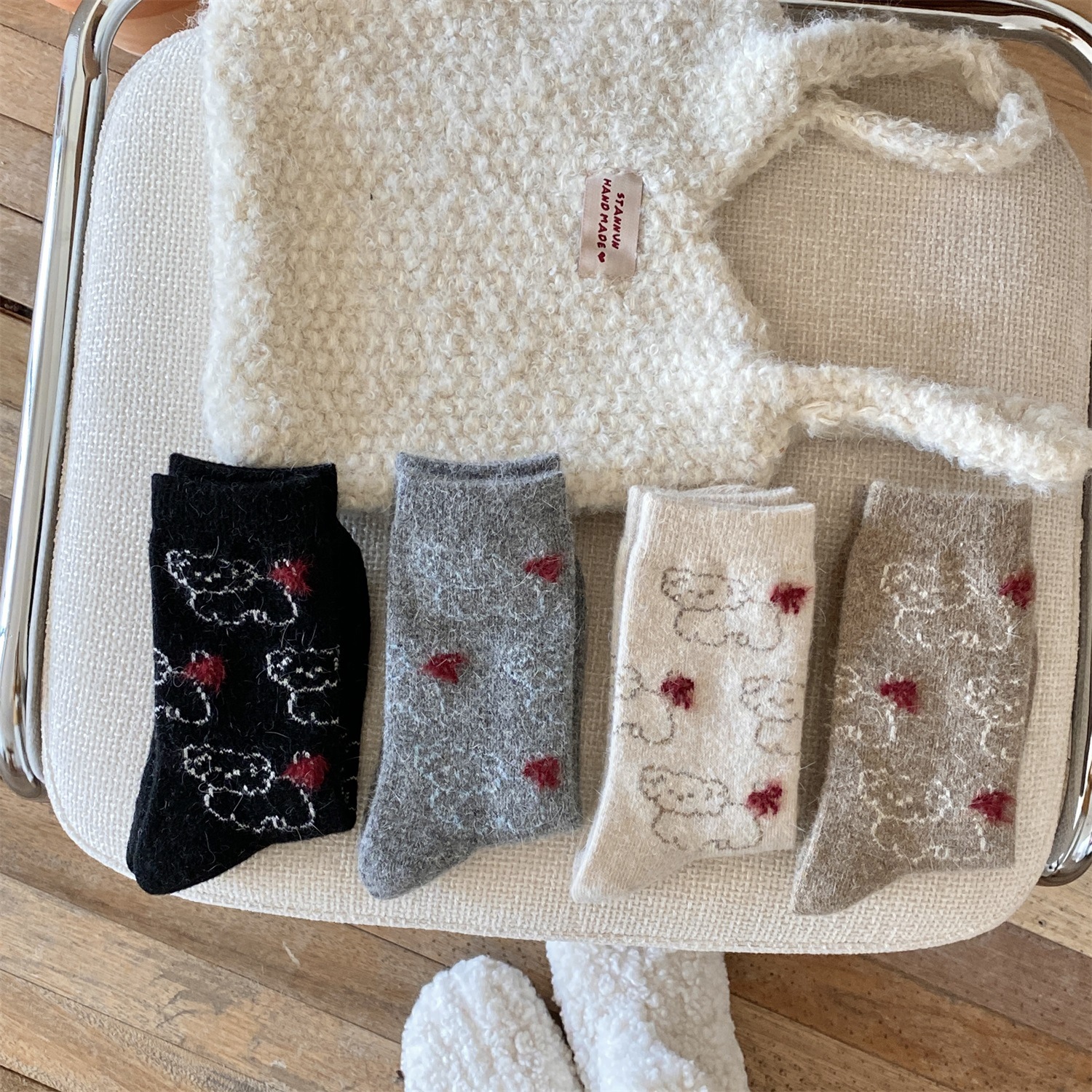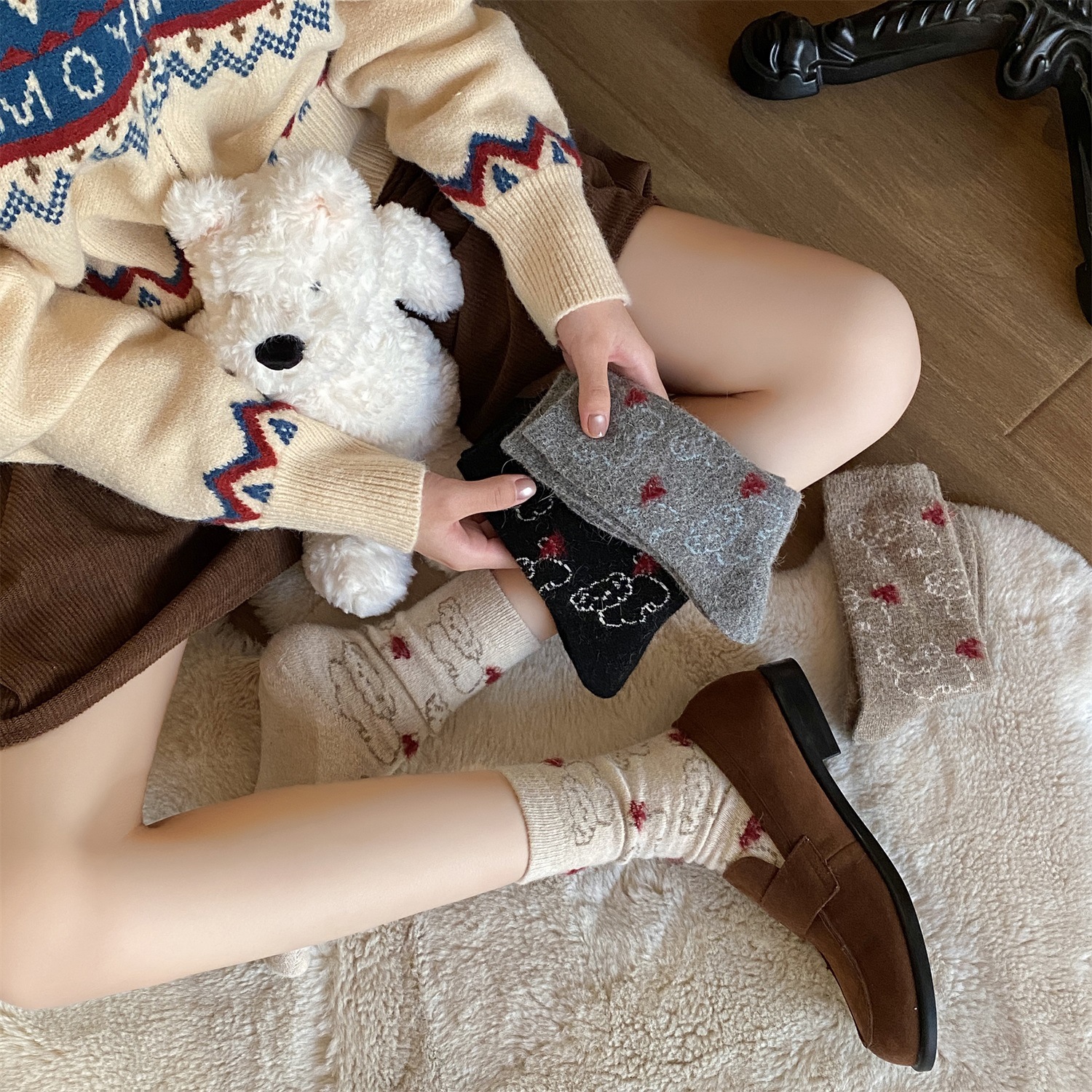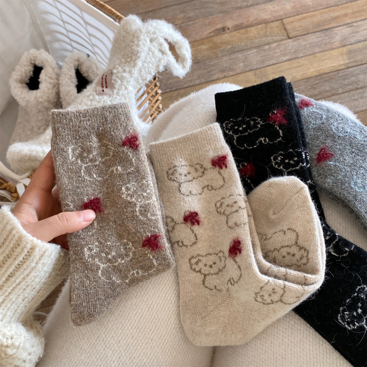 겨울 토끼 양모 양말 귀여운 만화 강아지 양말 여성의 중간 튜브 양말 가을과 겨울 두꺼운 따뜻한 일본 스타일 양모 양말