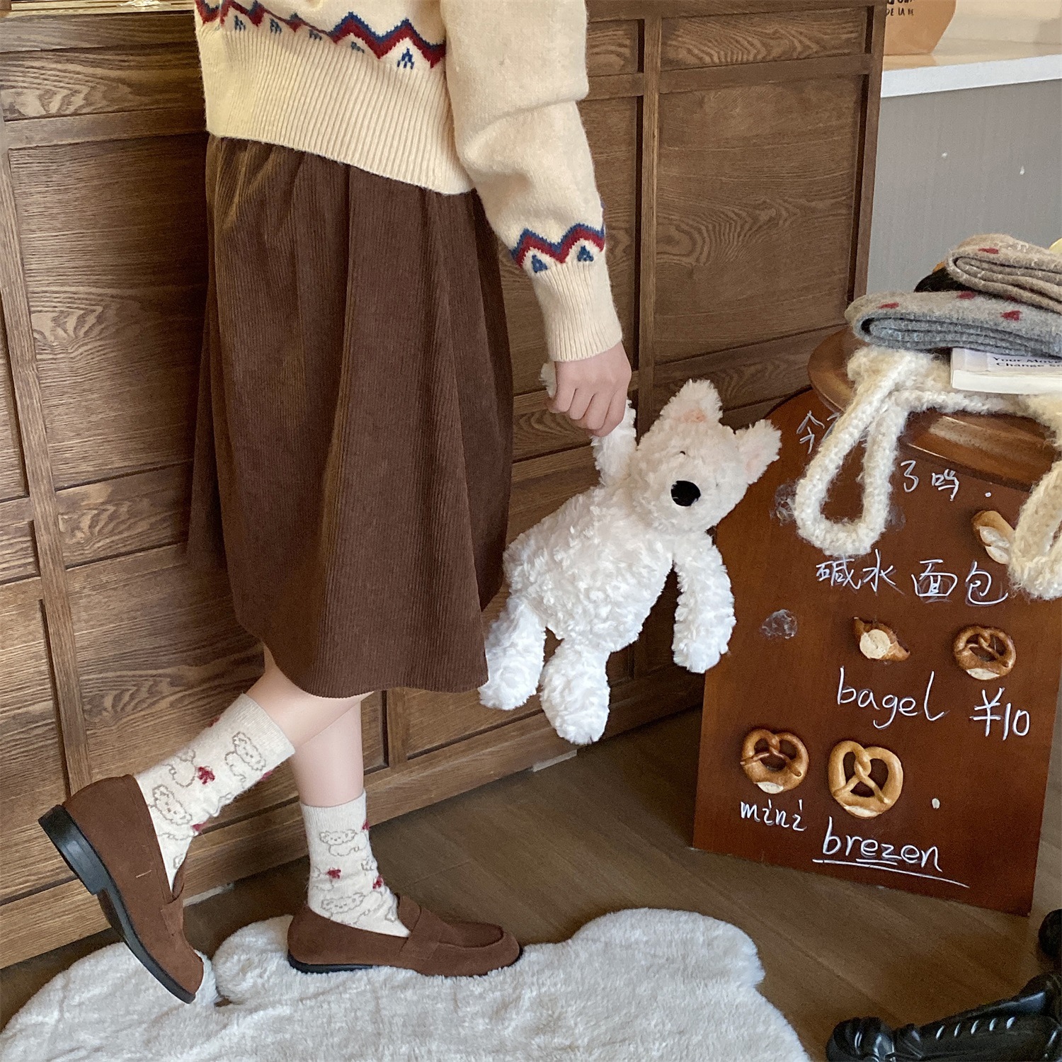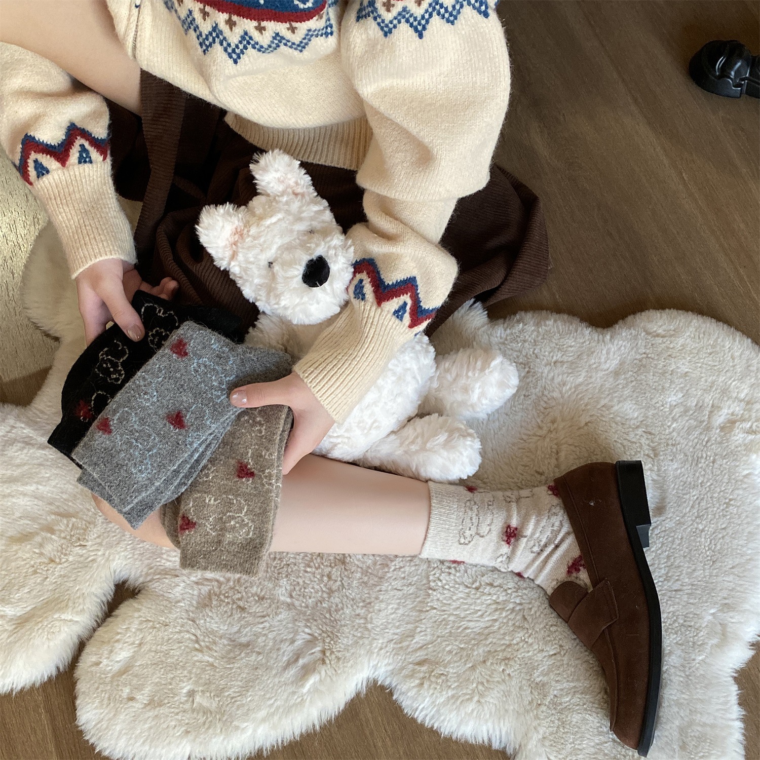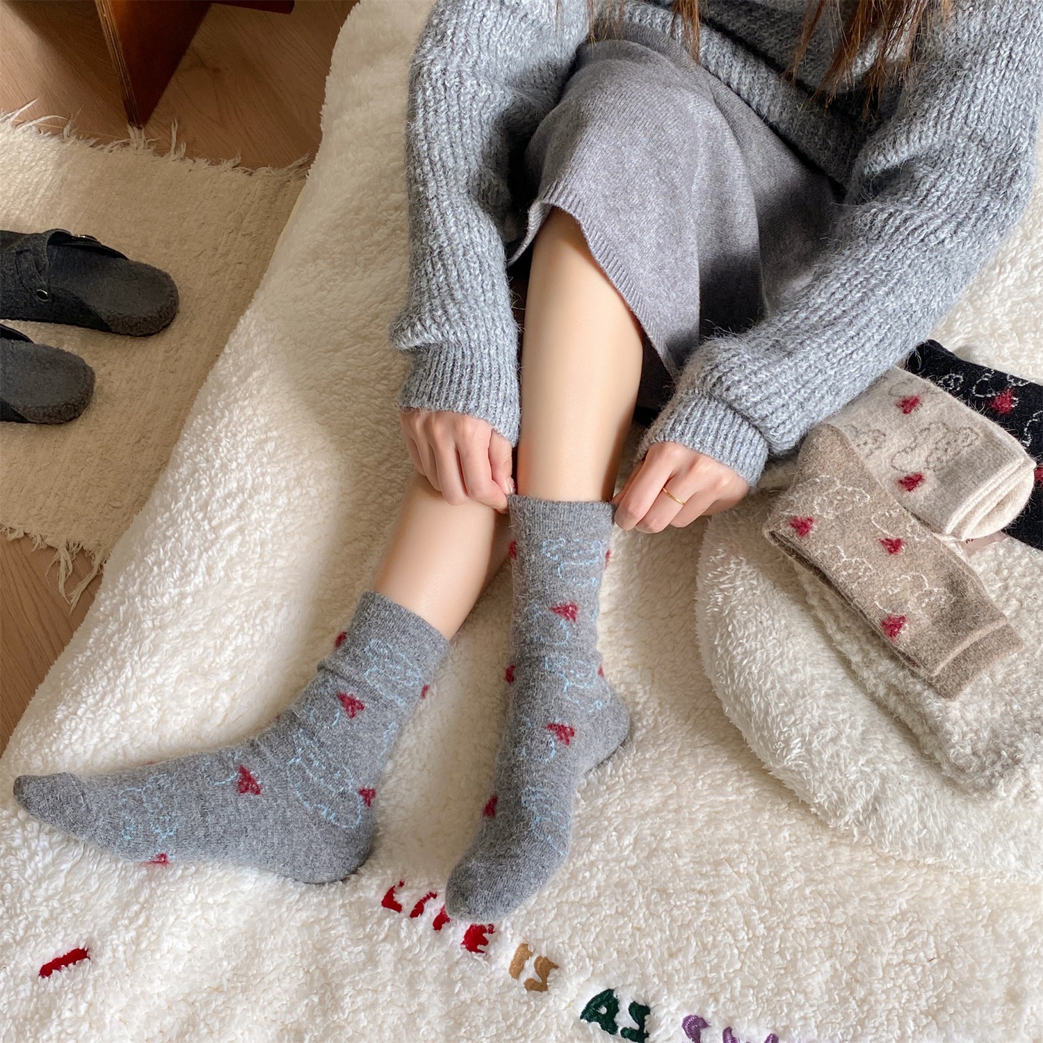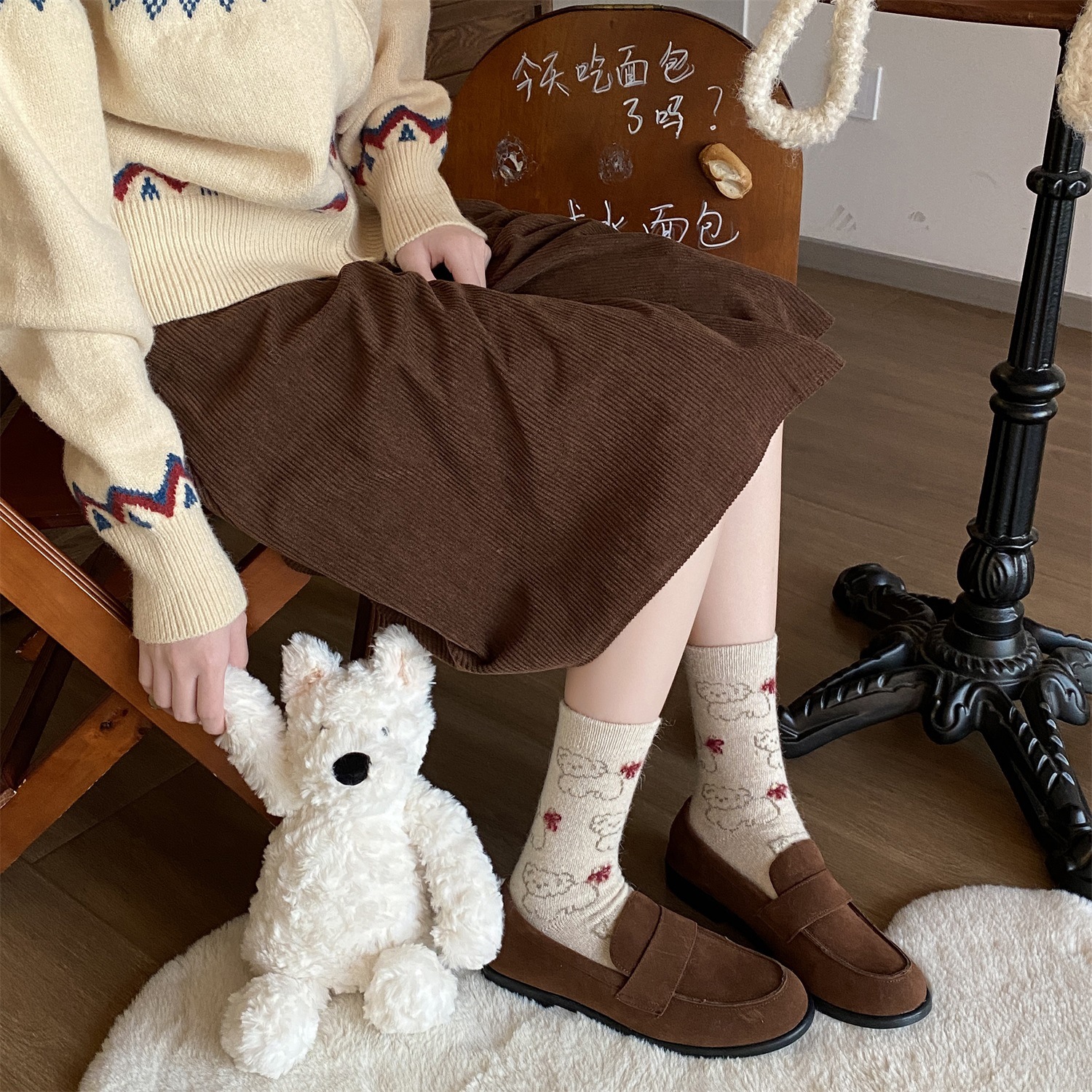 겨울 토끼 양모 양말 귀여운 만화 강아지 양말 여성의 중간 튜브 양말 가을과 겨울 두꺼운 따뜻한 일본 스타일 양모 양말