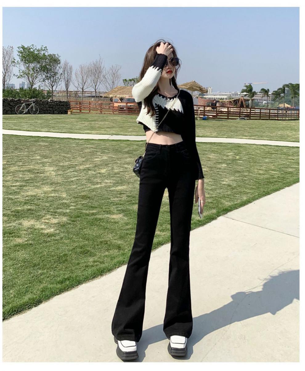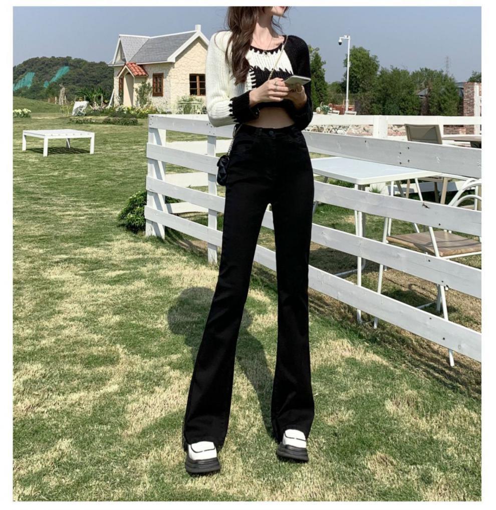 기모 청바지 여성용 말굽 마이크로 플레어 바지 2024 년 가을과 겨울 새로운 높은 허리 탄성 넓은 다리 검은 슬리밍스토어 가기
