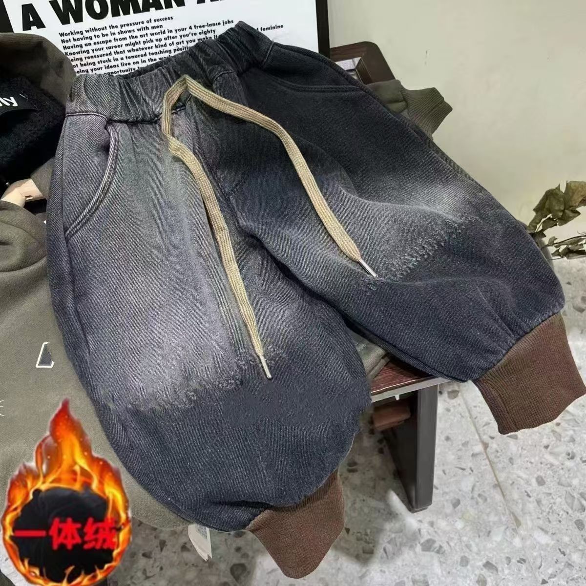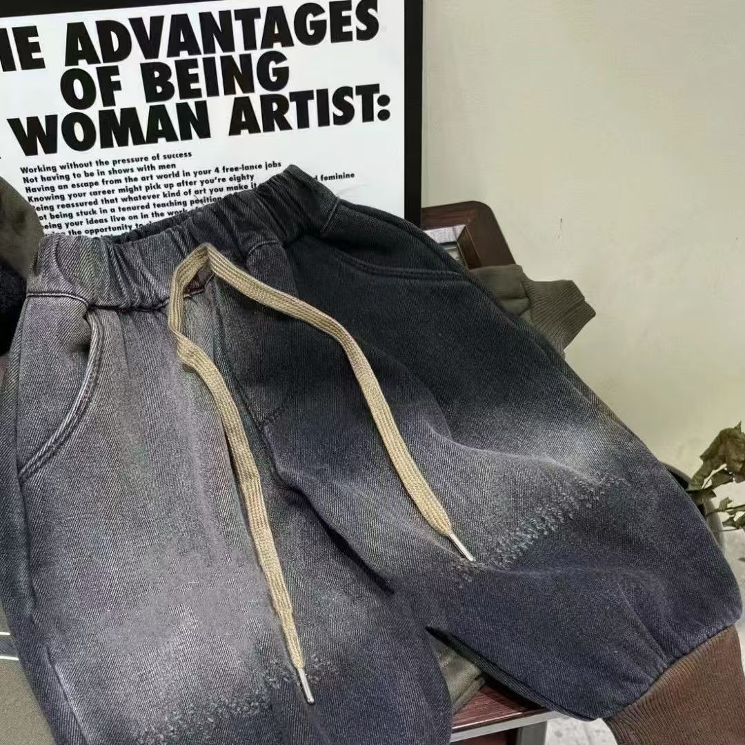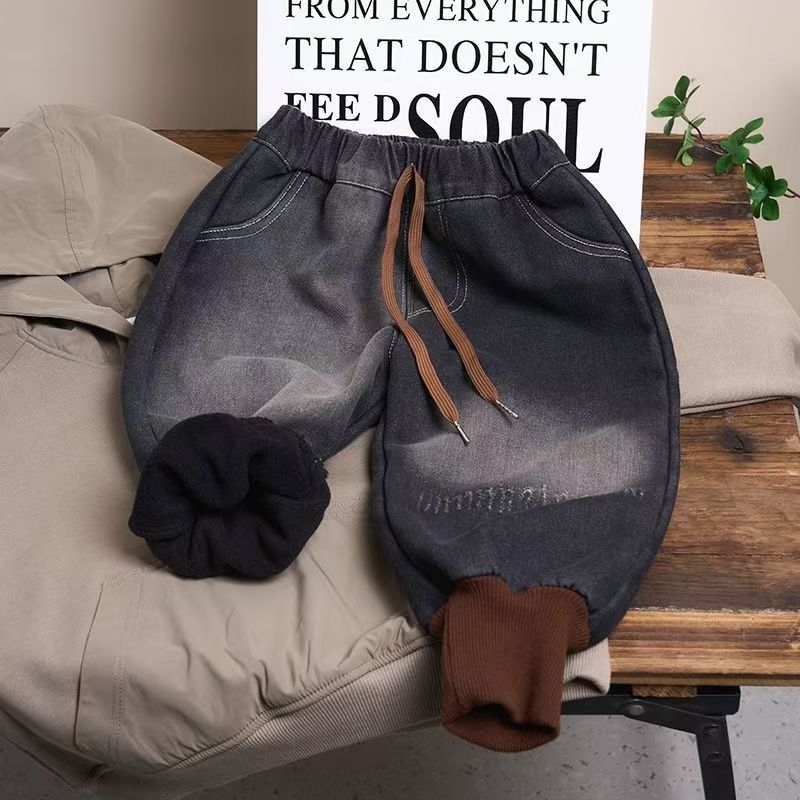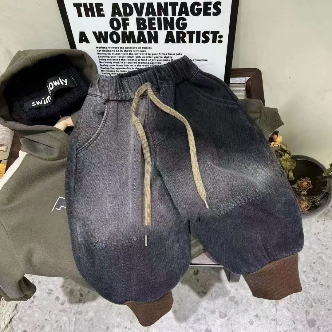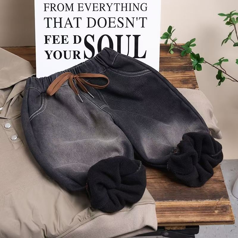 남학생 기모 청바지 겨울 새 어린이 느슨한 서양 스타일 블루머스 어린이 캐주얼 원피스 벨벳 바지스토어 가기