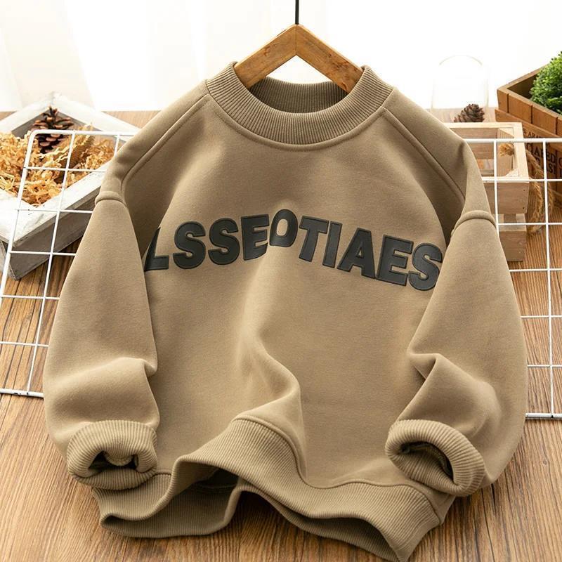 아동복 소년 봄과 가을 Wei Yi 2024 새로운 어린이 레저 기모 두꺼운 따뜻한 원피스 벨벳 탑 잘 생긴스토어 가기