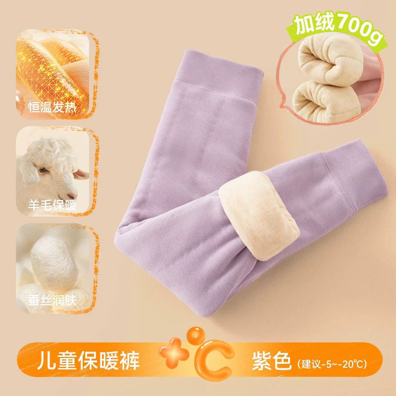 • 보라색 [두꺼운 벨벳] 울과 실크 보온팬츠 세트