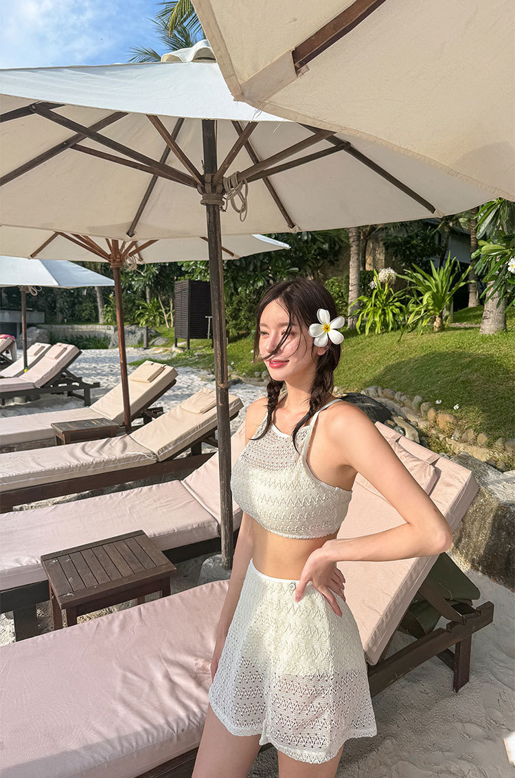 여성을위한 새로운 순수한 소원 슬링 온천 한국 인 스타일 스플릿 비키니 레이스 섹시 할로우 스커트 수영복스토어 가기