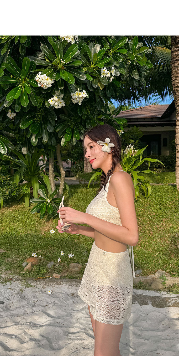 여성을위한 새로운 순수한 소원 슬링 온천 한국 인 스타일 스플릿 비키니 레이스 섹시 할로우 스커트 수영복