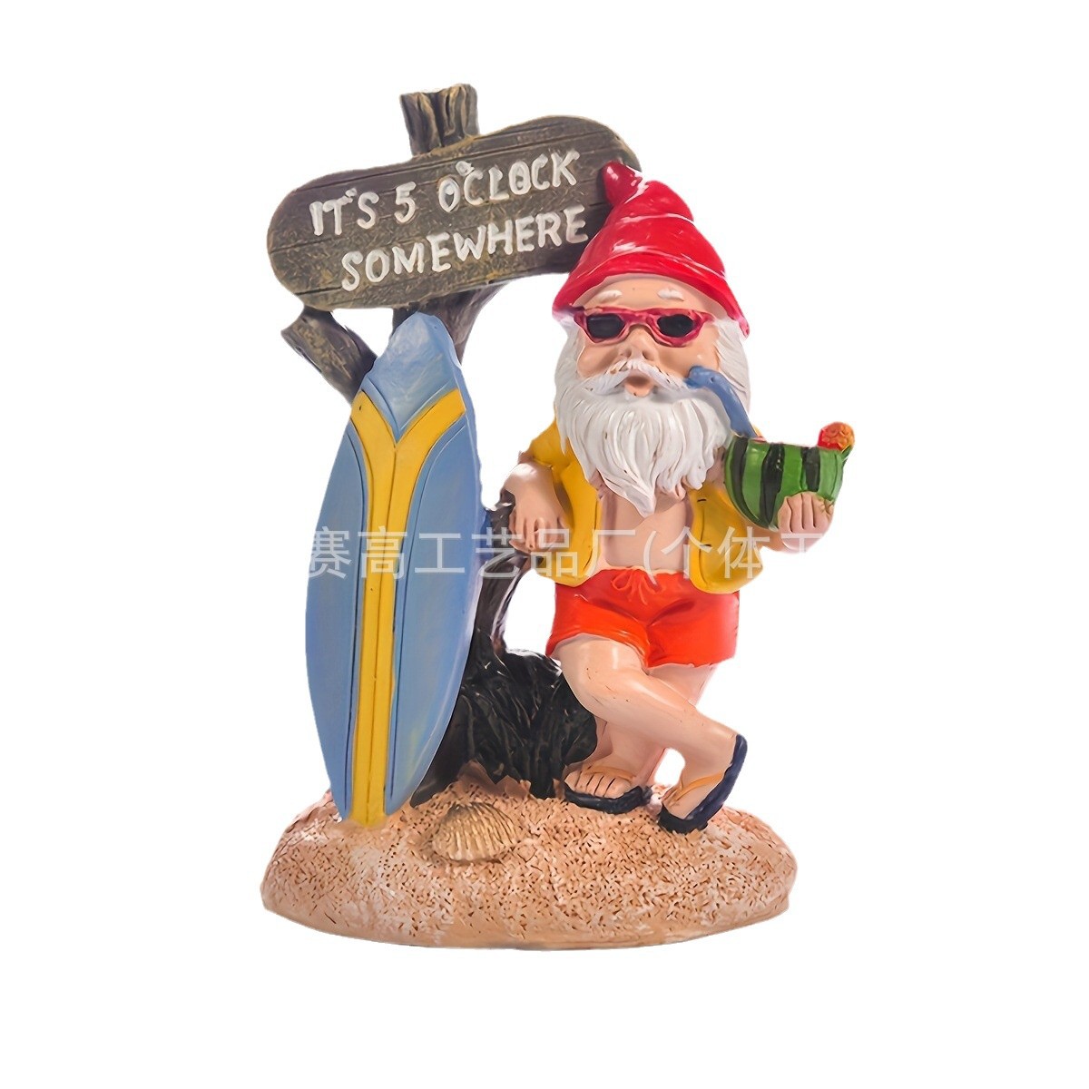 국경 간 뜨거운 판매 해변 서핑 보드 드워프 동상 수박 드워프 조각 홈 장식 장식품을 먹는 노인스토어 가기