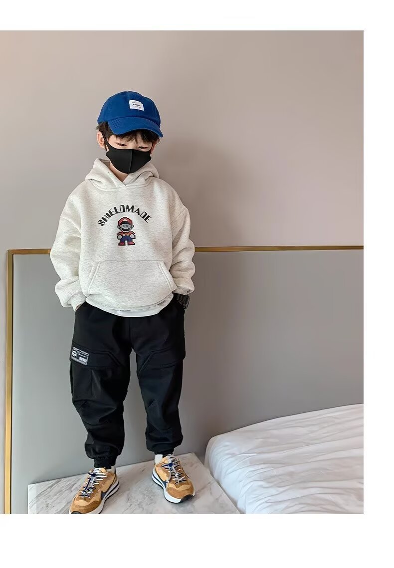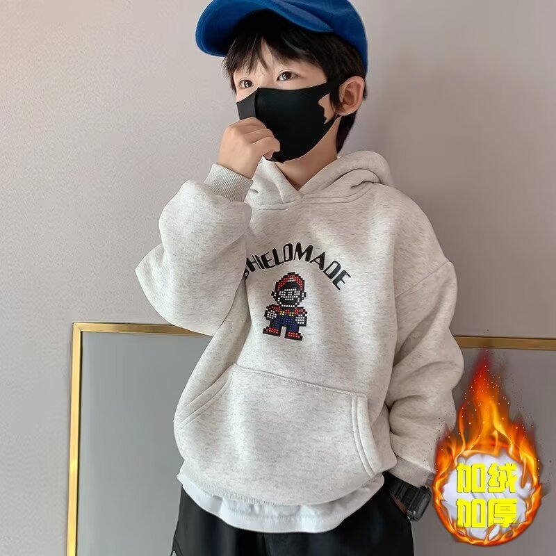 소년 기모 스웨트셔츠 겨울 코트 두껍게 한 어린이 한국 스타일 탑 따뜻한 아기 겨울 옷 서양식 소년 코트