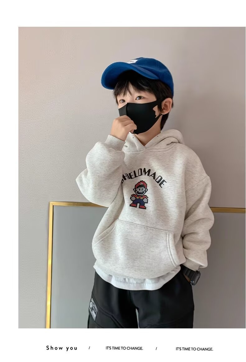 소년 기모 스웨트셔츠 겨울 코트 두껍게 한 어린이 한국 스타일 탑 따뜻한 아기 겨울 옷 서양식 소년 코트스토어 가기
