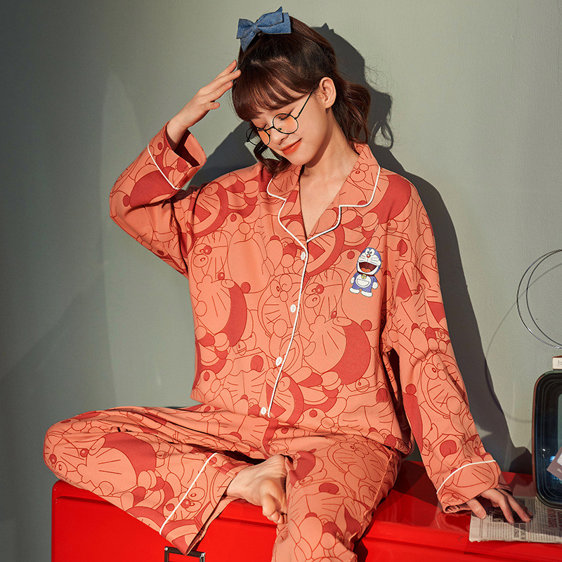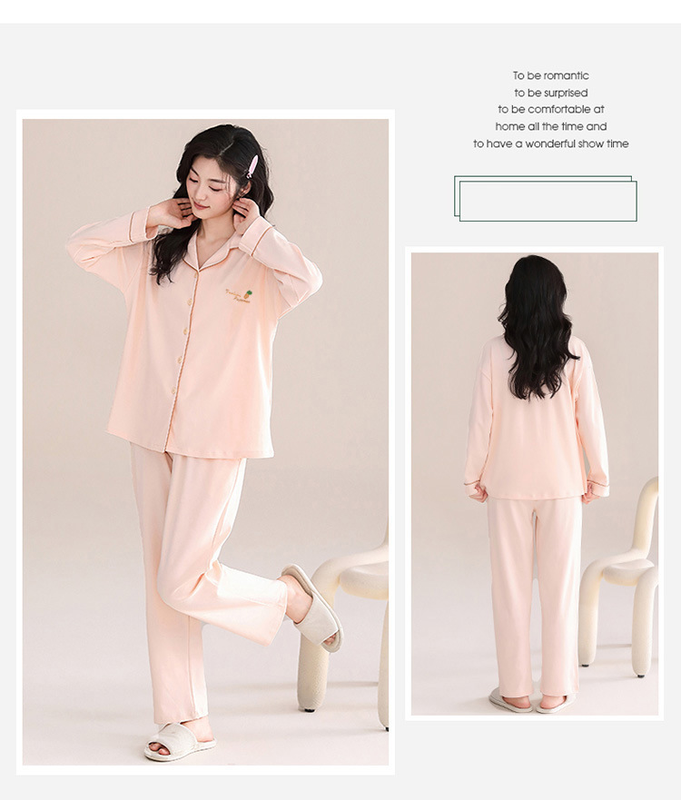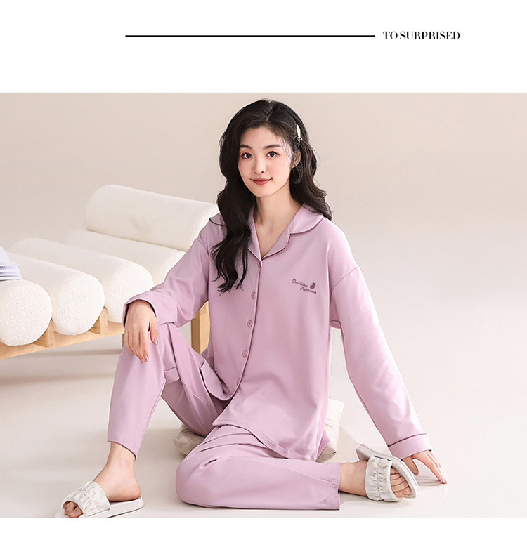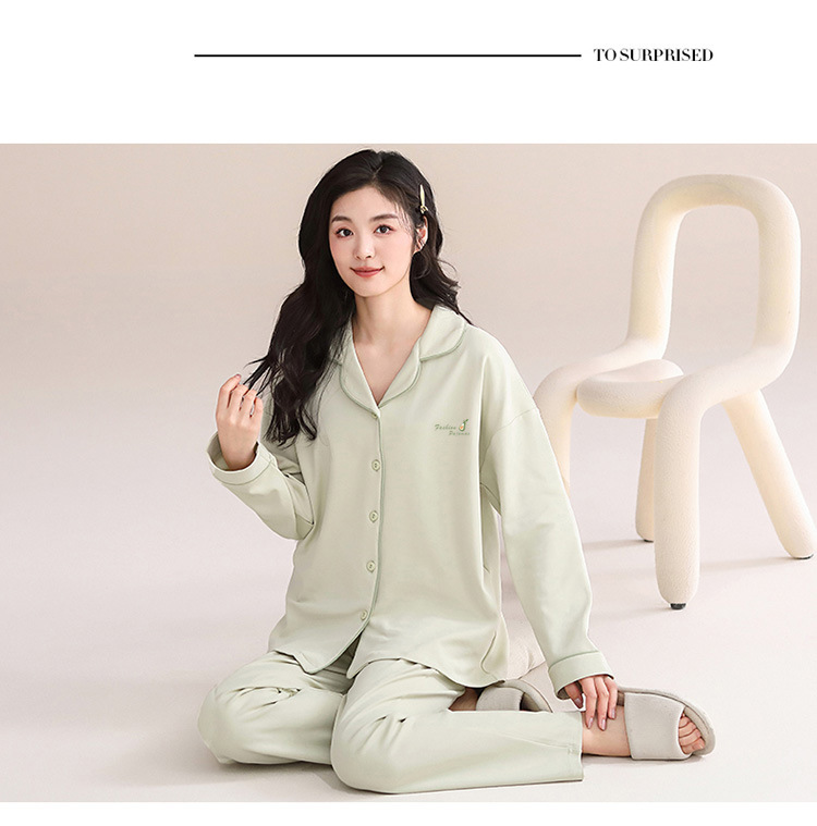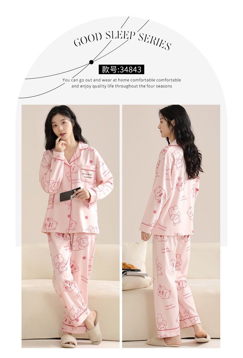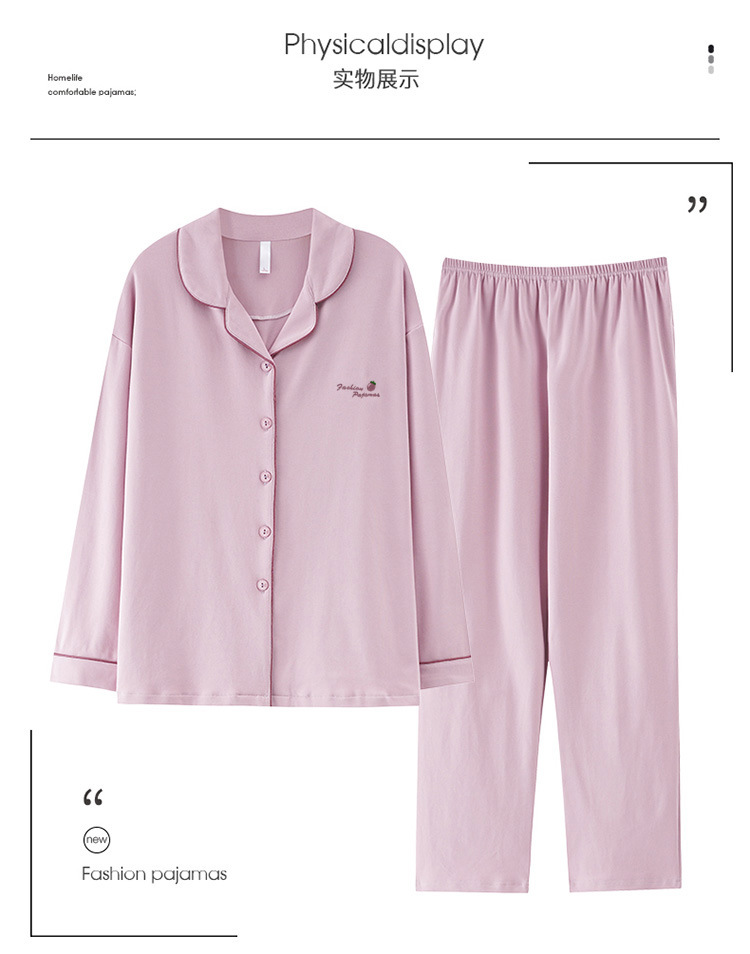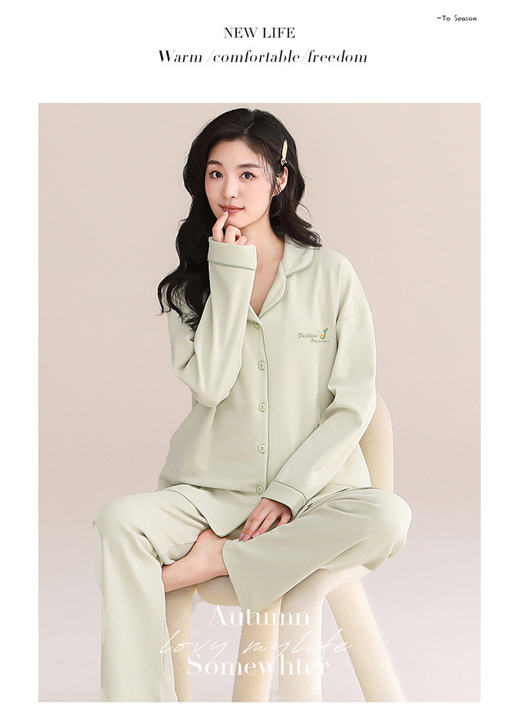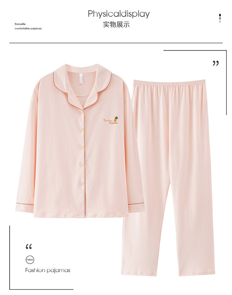 봄과 가을 새 잠옷 여성 긴 소매 바지 면 홈 착용 달콤한 한국 단색 세트 라이브 폭발스토어 가기