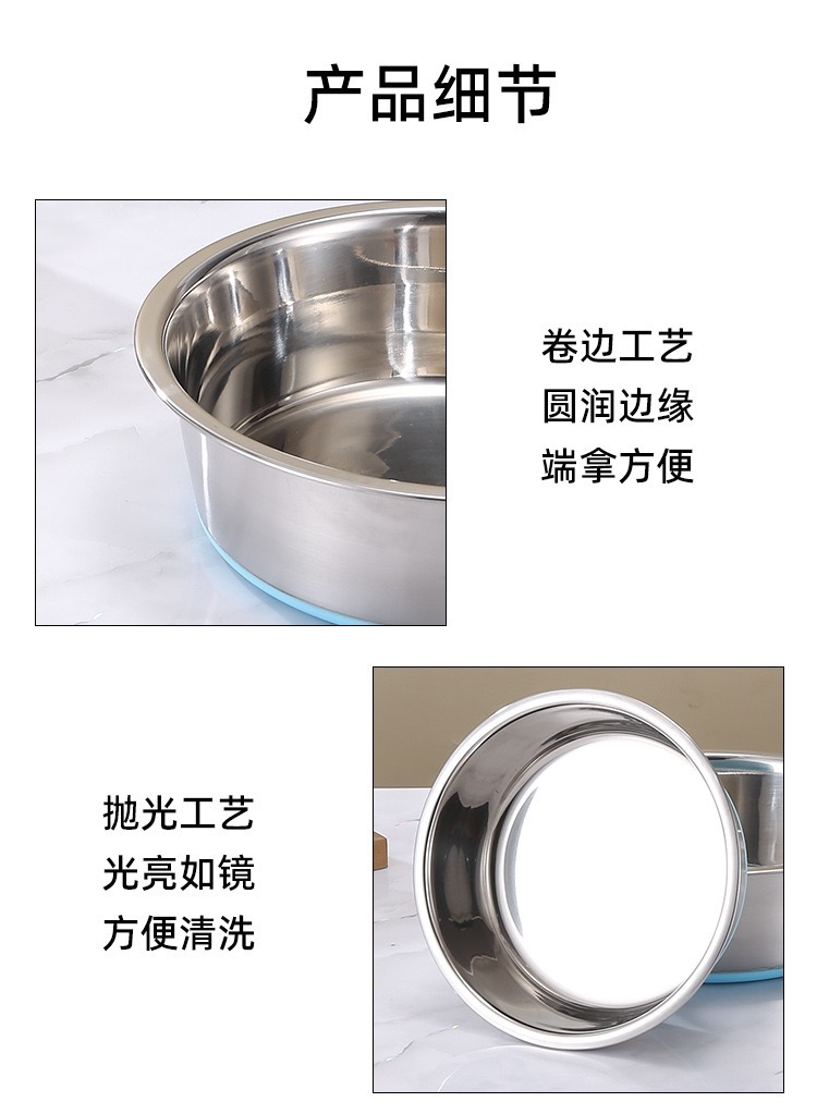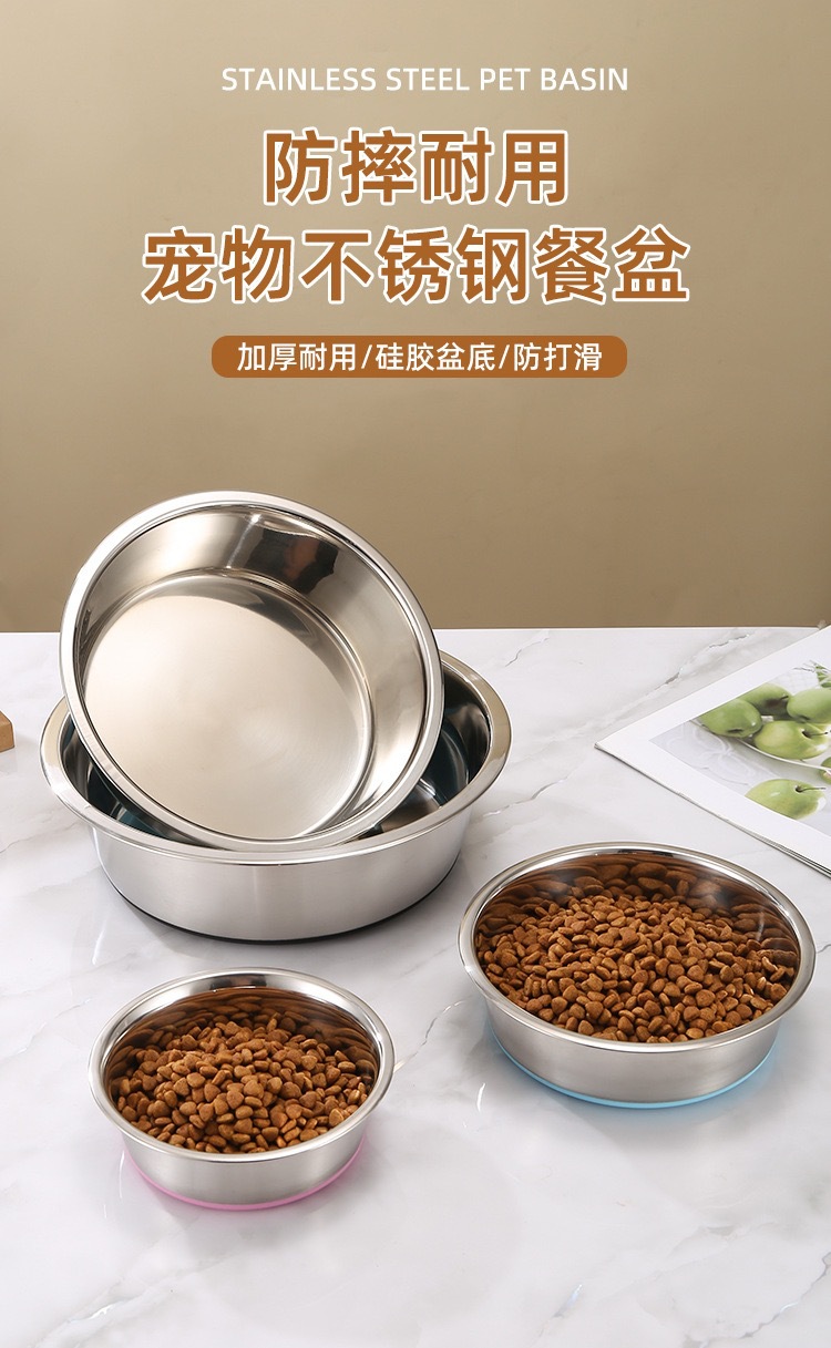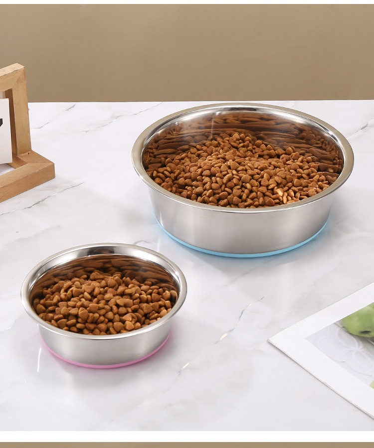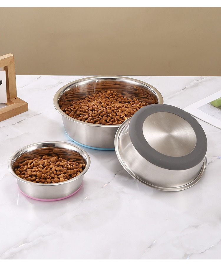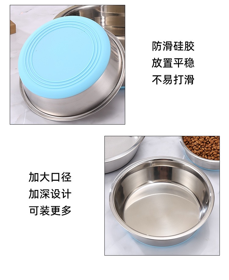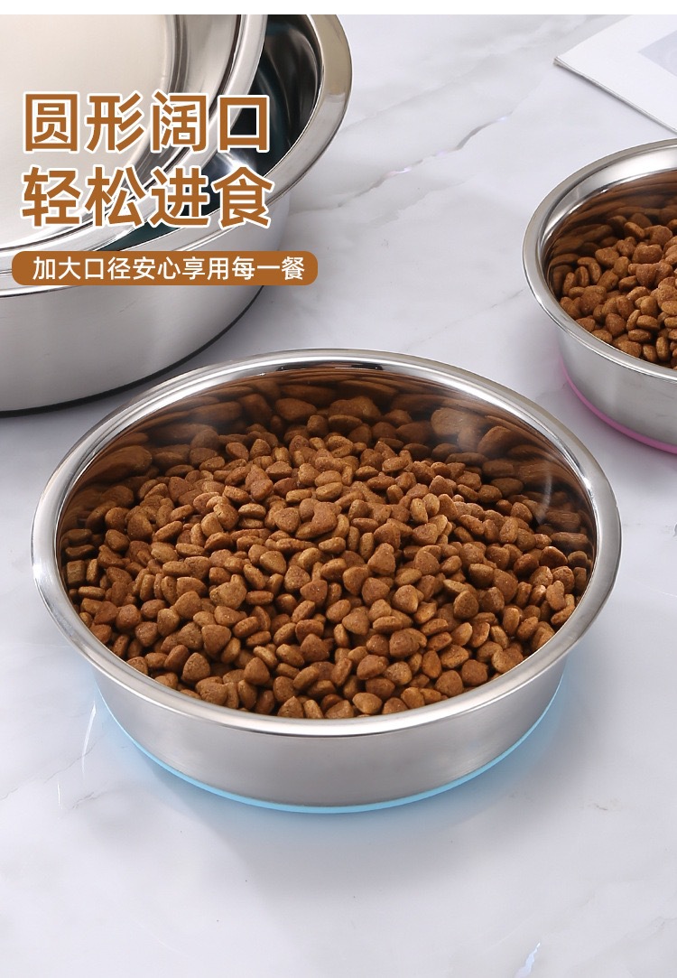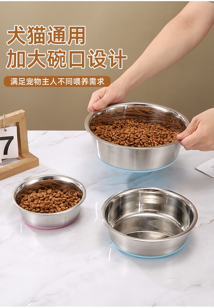 개 냄비 개 그릇 실리콘베이스 미끄럼 방지 노크 스테인레스 스틸 대용량 애완 동물 그릇 대형 개 식품 그릇 고양이 밥 그릇