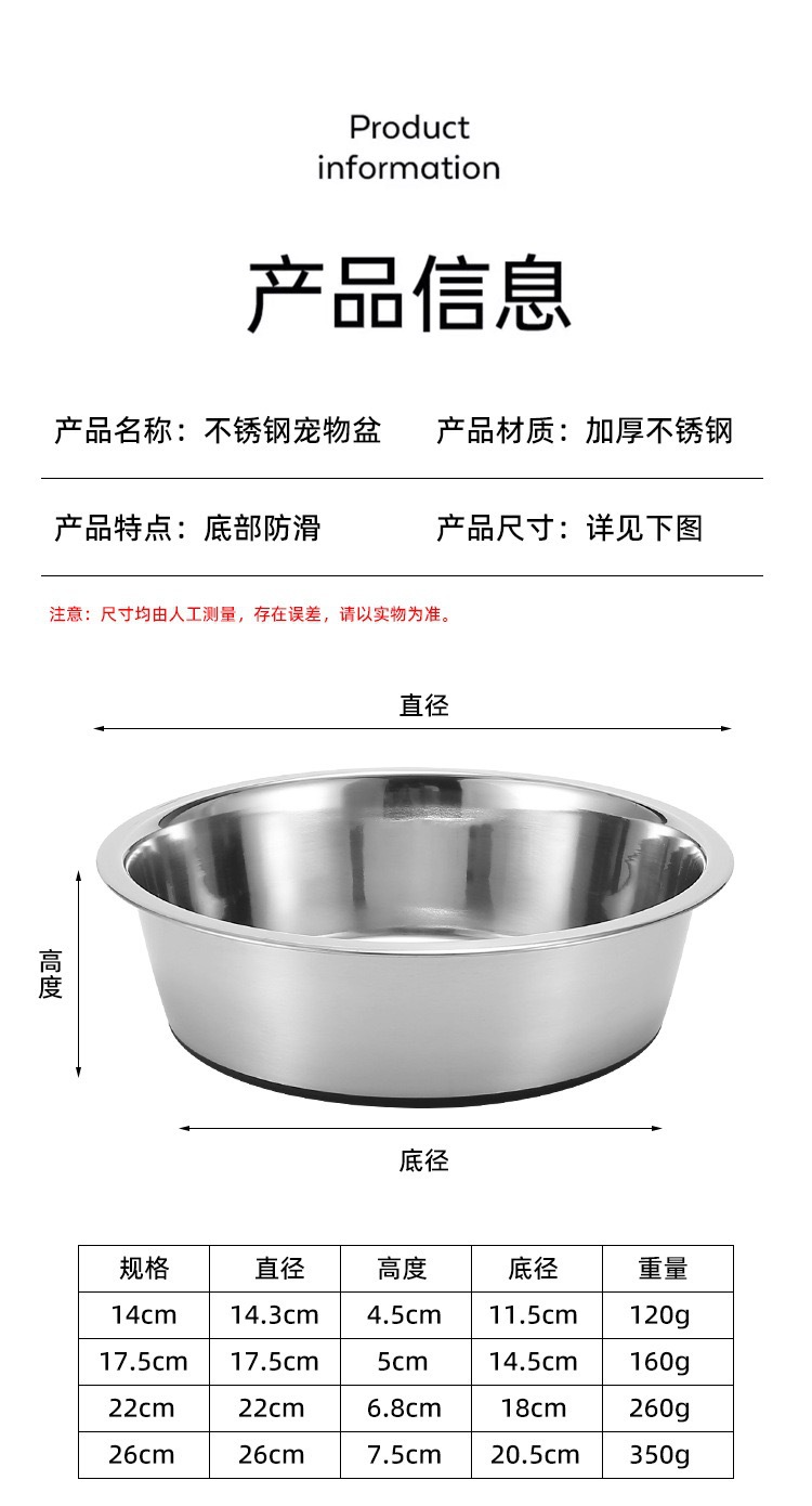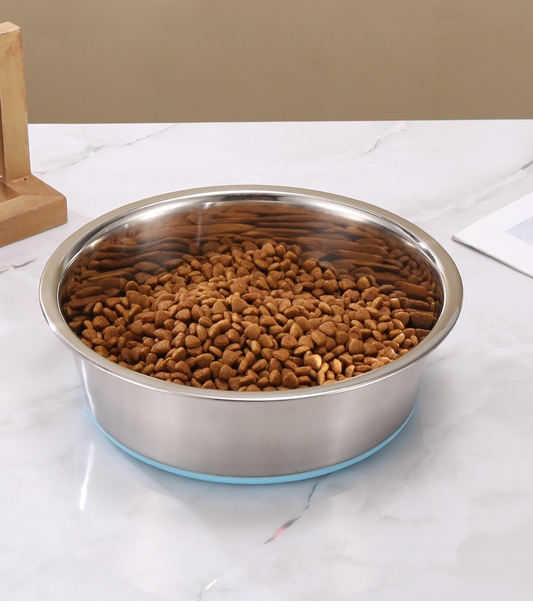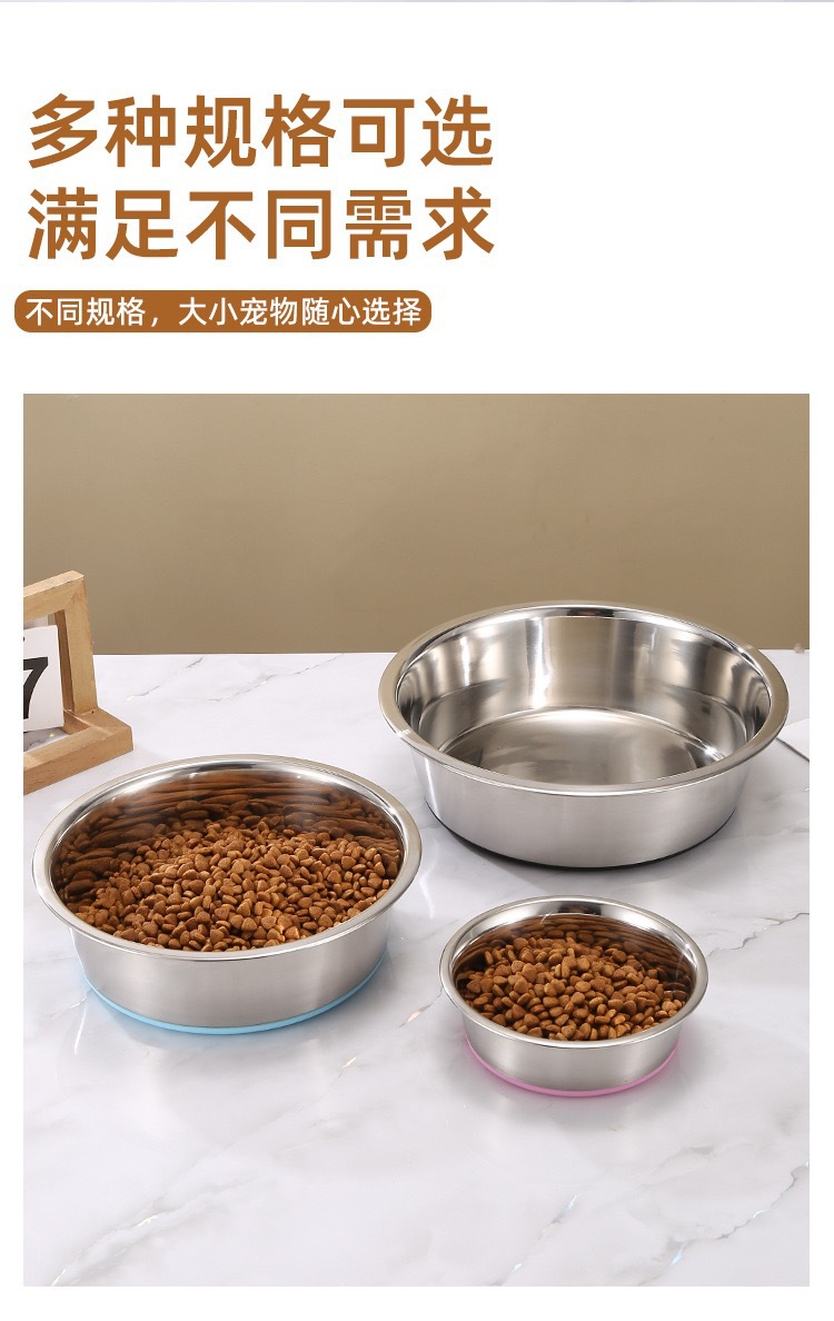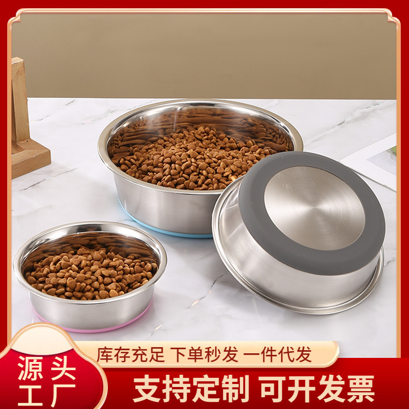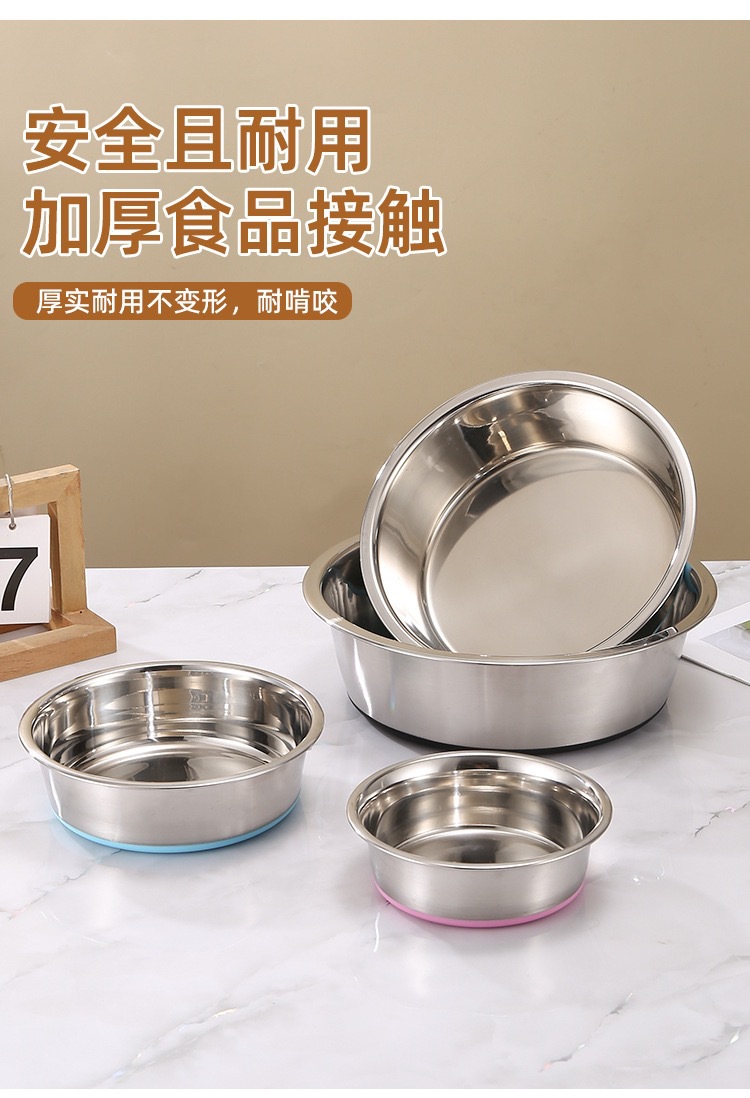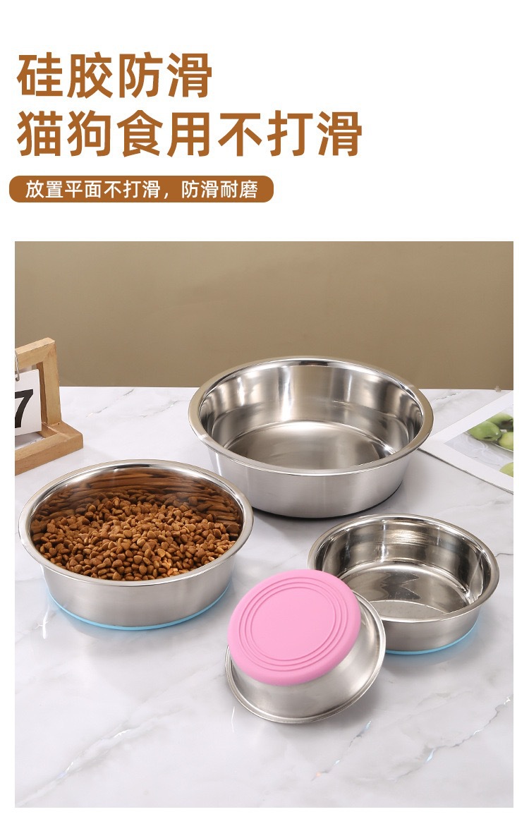 개 냄비 개 그릇 실리콘베이스 미끄럼 방지 노크 스테인레스 스틸 대용량 애완 동물 그릇 대형 개 식품 그릇 고양이 밥 그릇스토어 가기