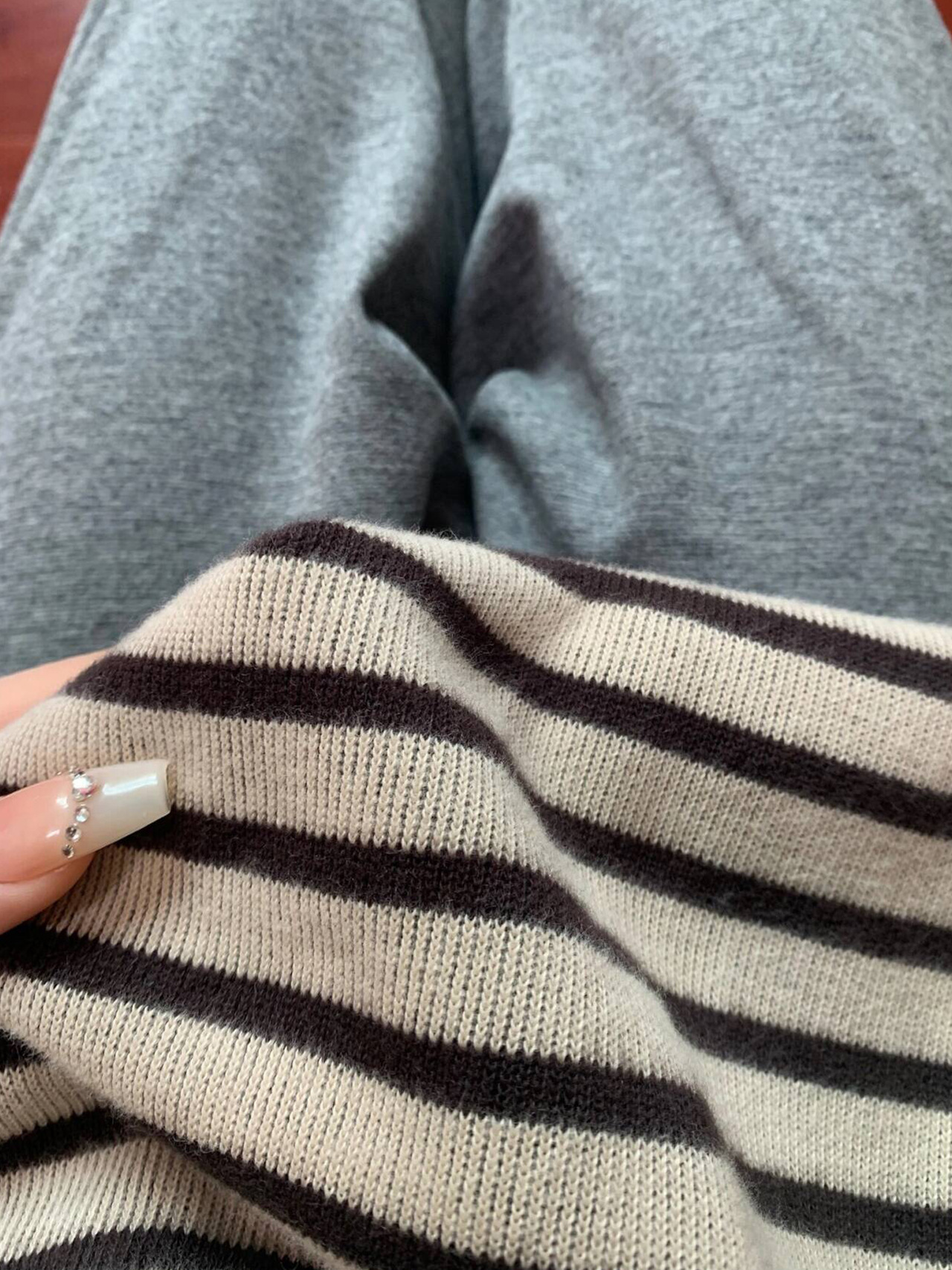 가을과 겨울 복고풍 홍콩 풍미의 세대 느슨한 플러스 사이즈 줄무늬 세련된 긴팔 티셔츠 스웨터 여성의 게으른 윈드 코트스토어 가기