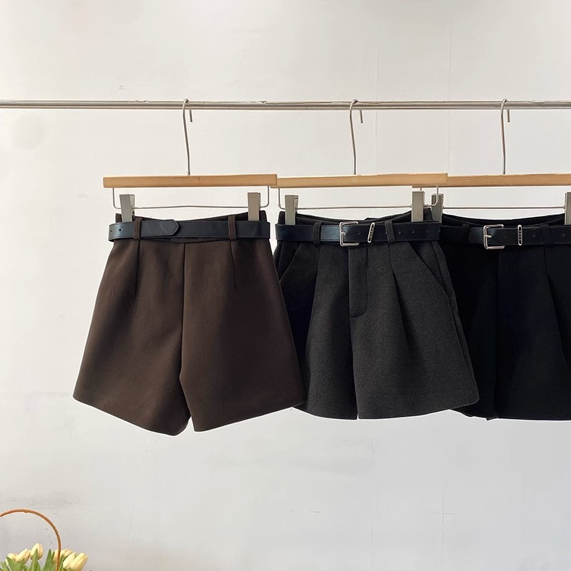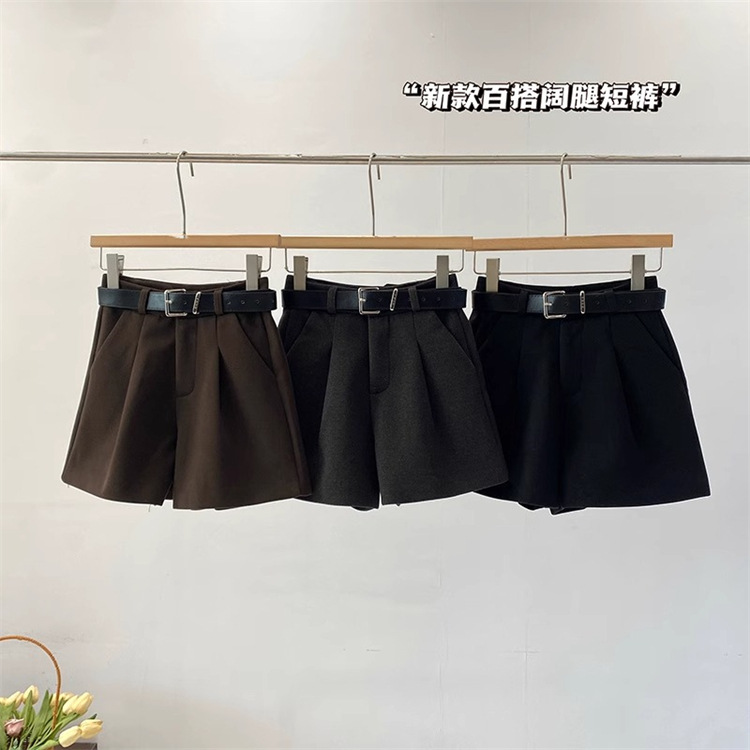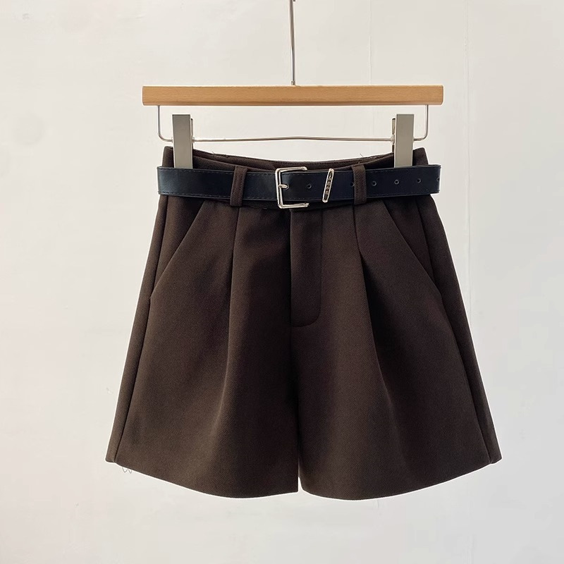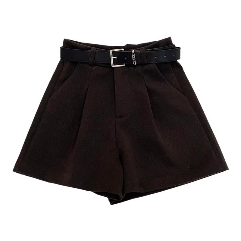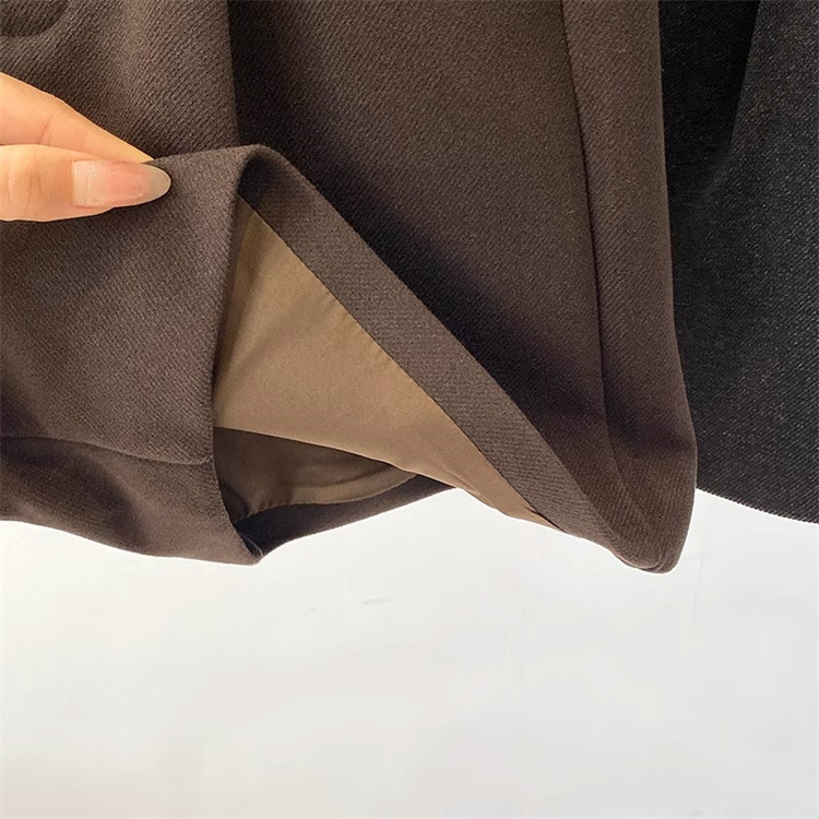 플러스 사이즈 다크 브라운 모직 세트 반바지 여성 겨울 2024 작은 슬리밍 느슨한 높은 허리 A 모양의 넓은 다리 바지스토어 가기