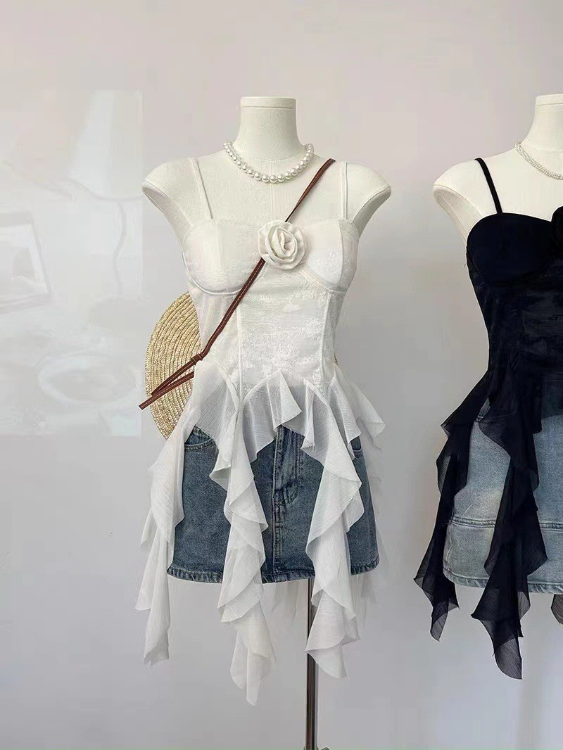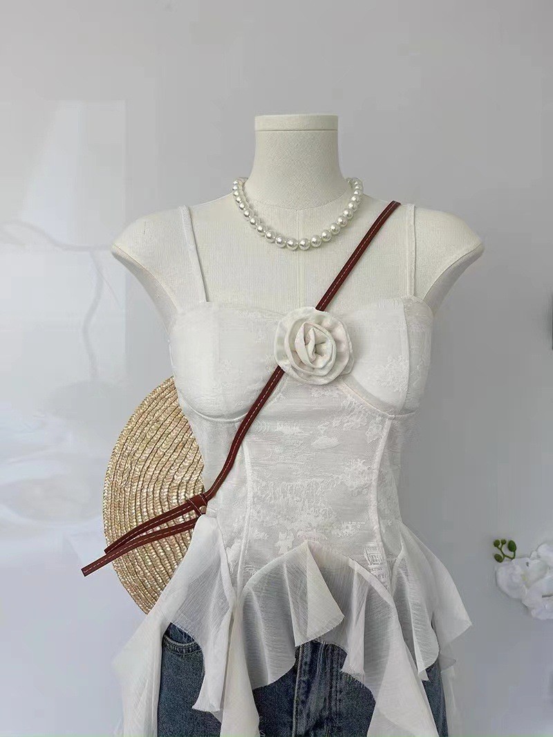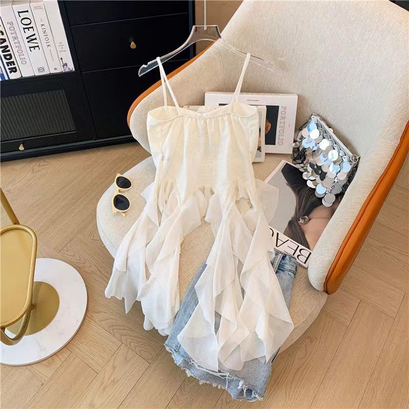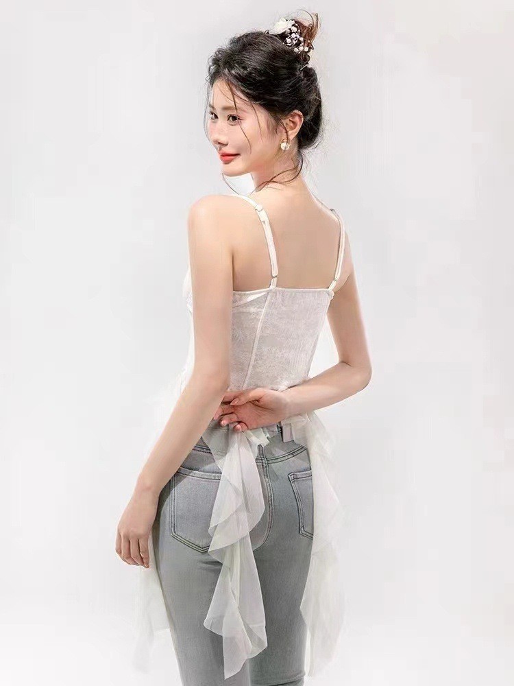 디자인 불규칙한 주름진 카미 솔 조끼 여성 독특한 성격 외부 착용 브레이스 가슴 패드 아름다운 뒤 틈새