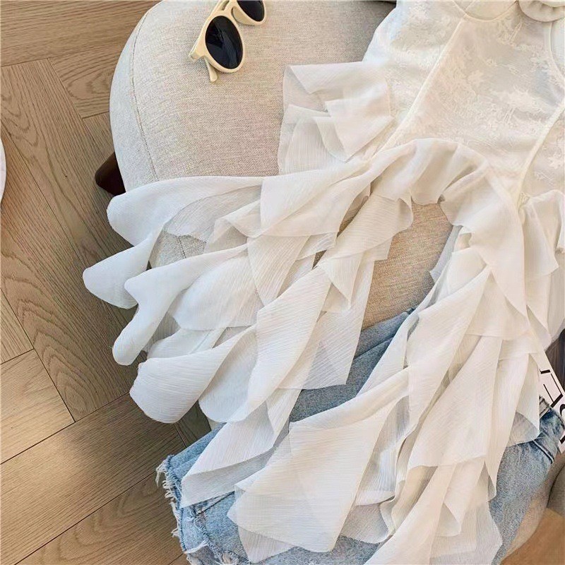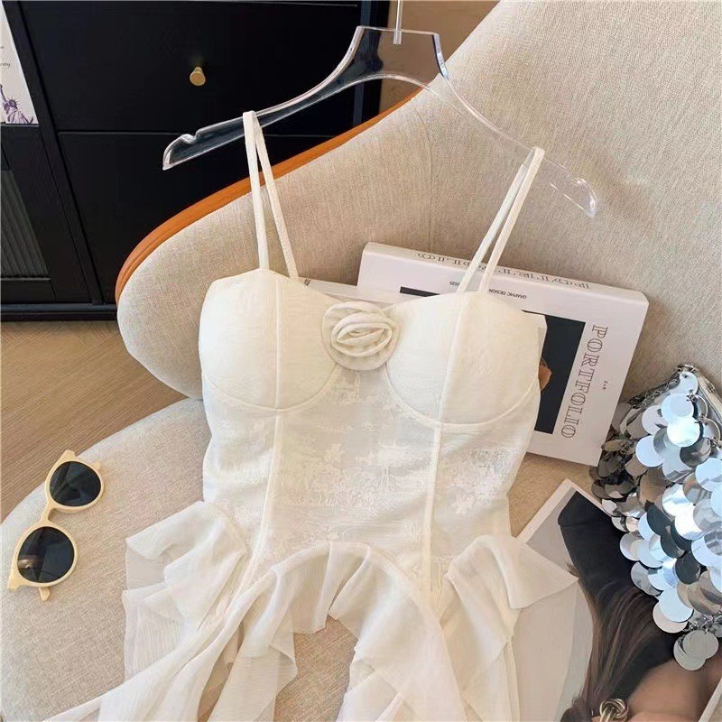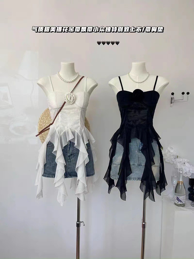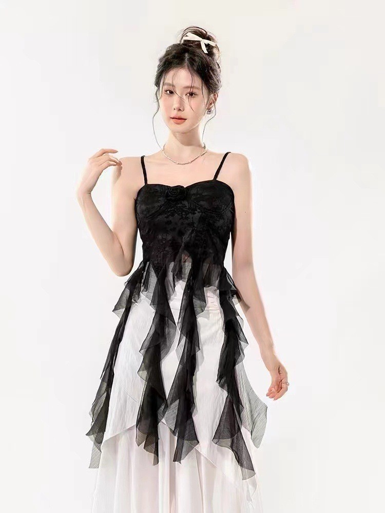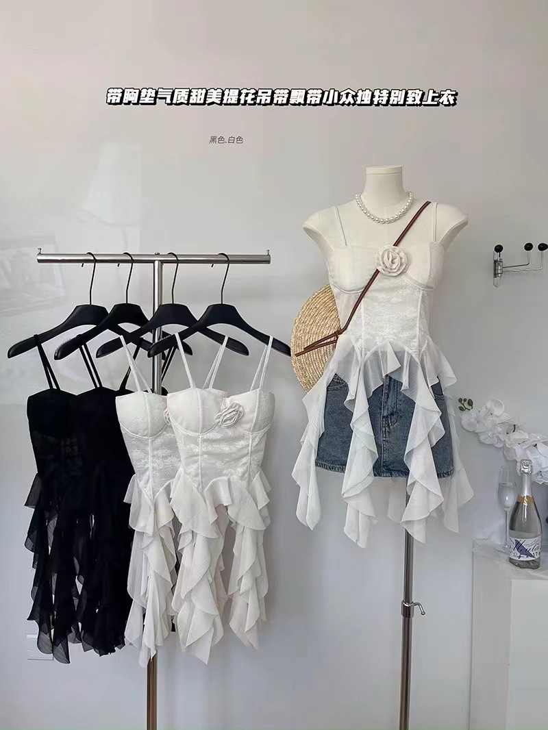 디자인 불규칙한 주름진 카미 솔 조끼 여성 독특한 성격 외부 착용 브레이스 가슴 패드 아름다운 뒤 틈새