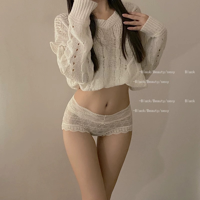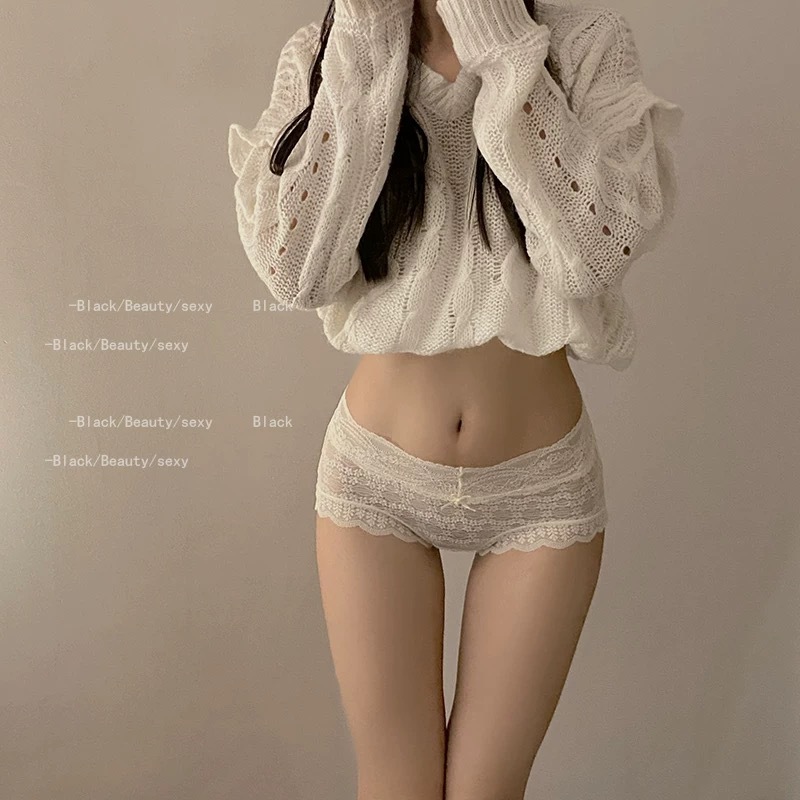 레이스 퓨어 욕망 스타일 미드 하이 허리 속옷 여성 섹시 2024 새로운 도착 No-마크 퓨어 코튼 크로치 소녀의 배꼽 브리프