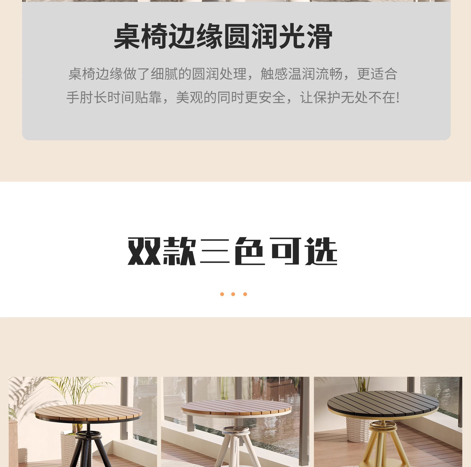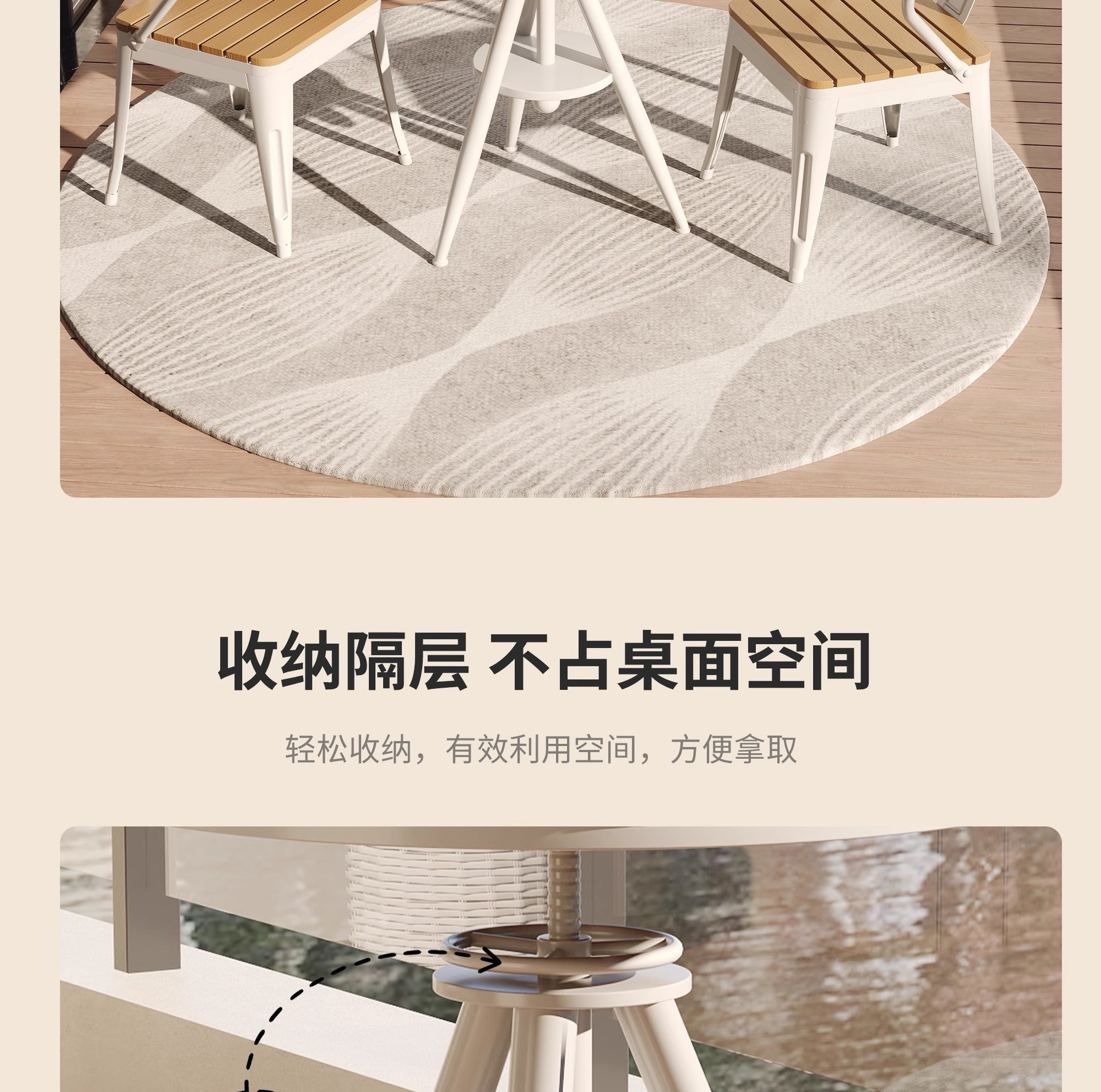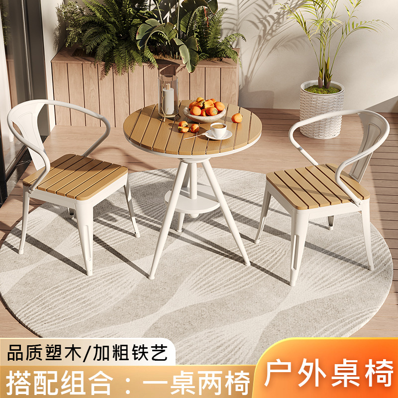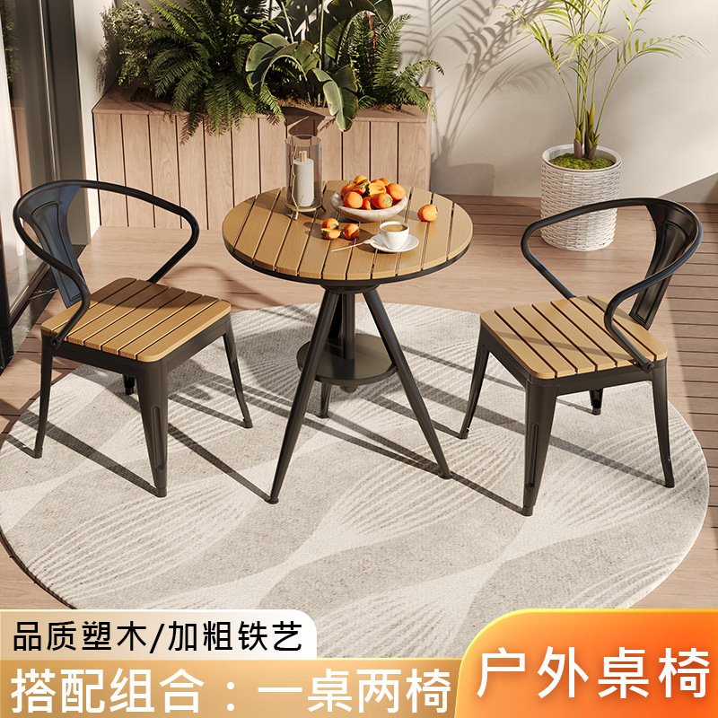 야외 레저 테이블 및 의자 야외 마당 부식 방지 목재 야외 식탁 및 의자 조합 가정용 식탁 발코니 광장 라운드 테이블스토어 가기