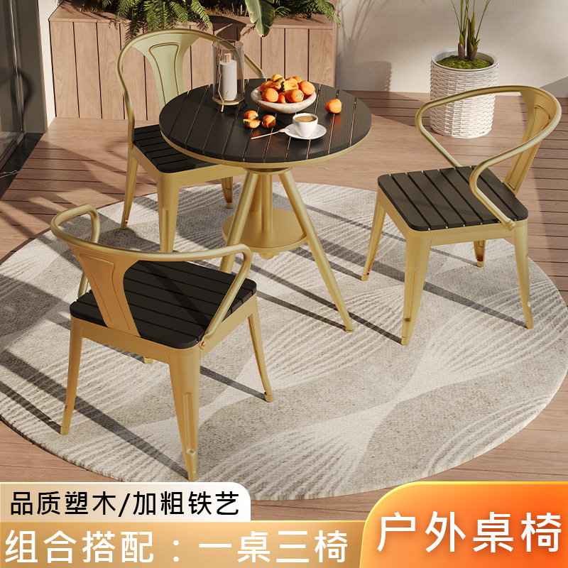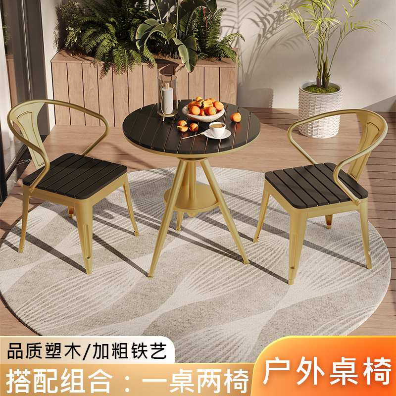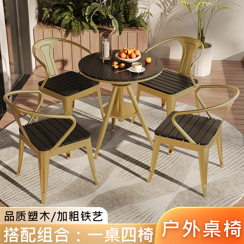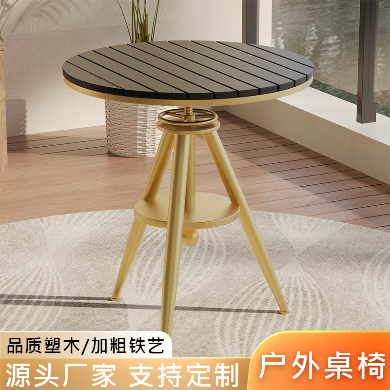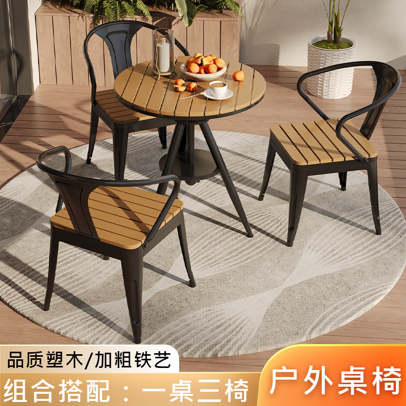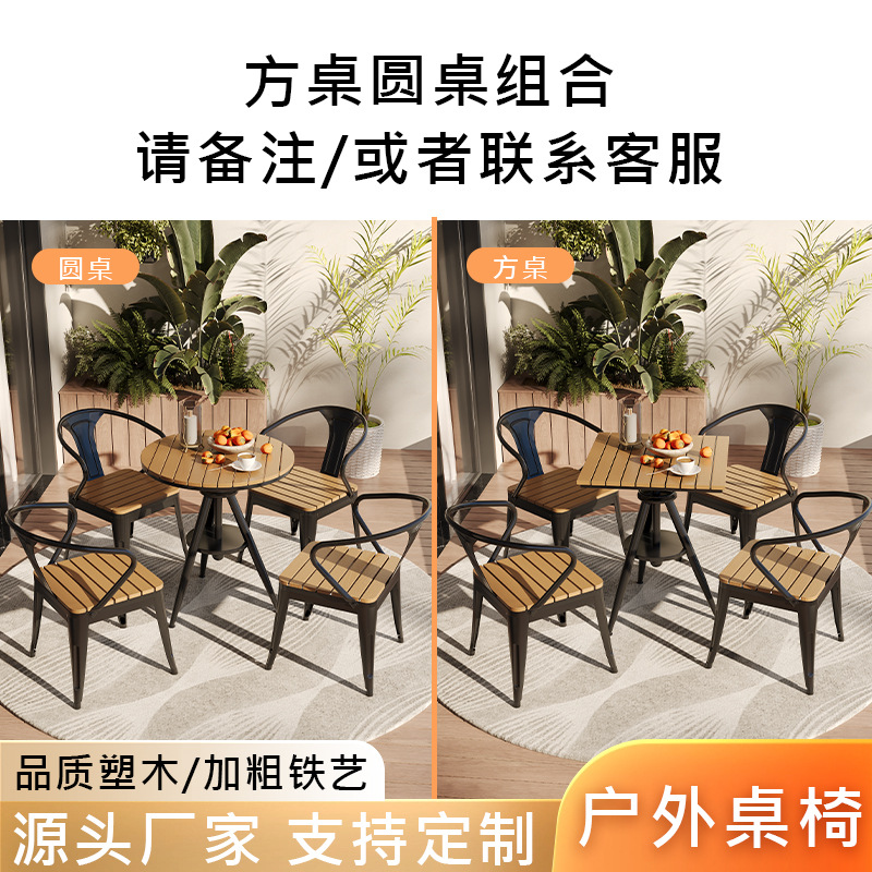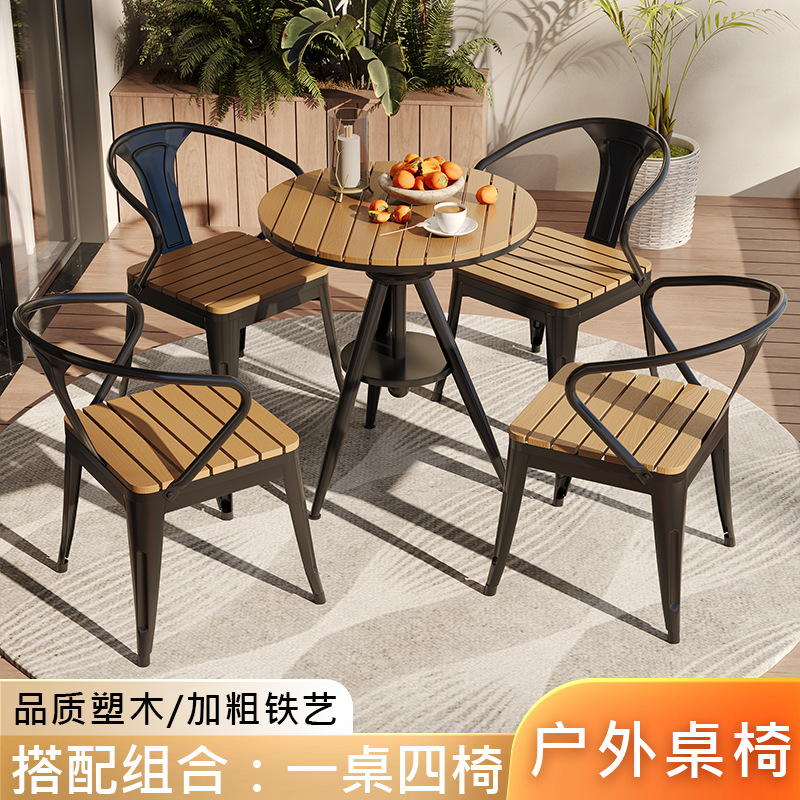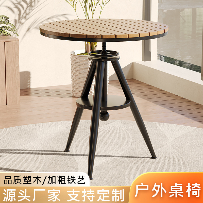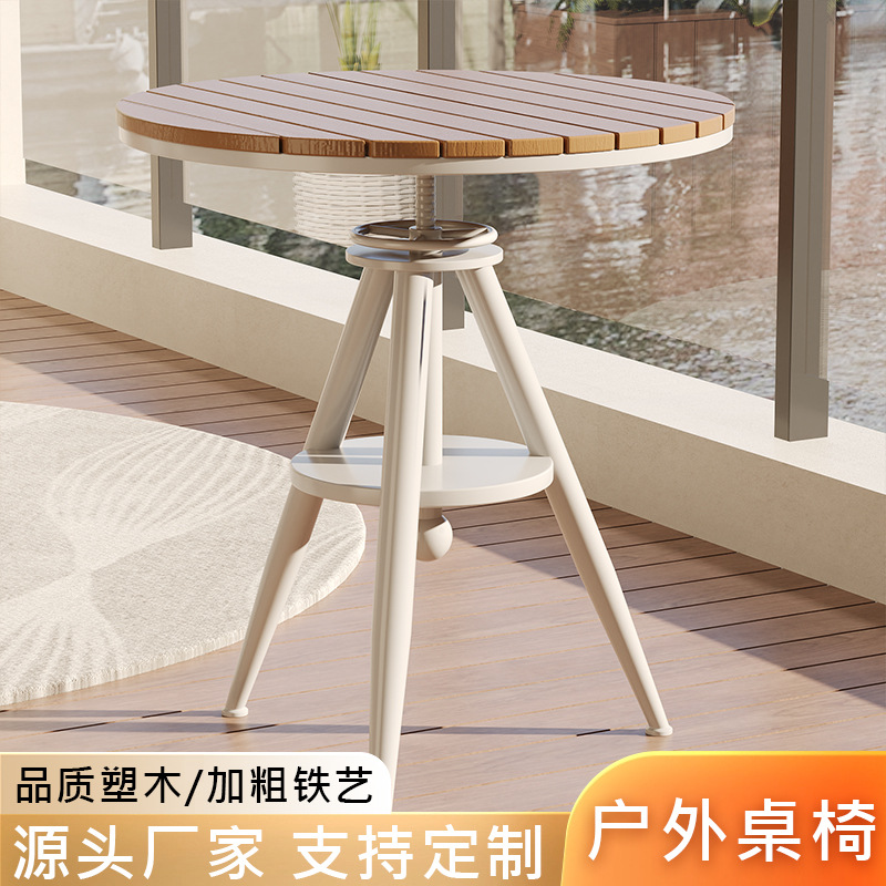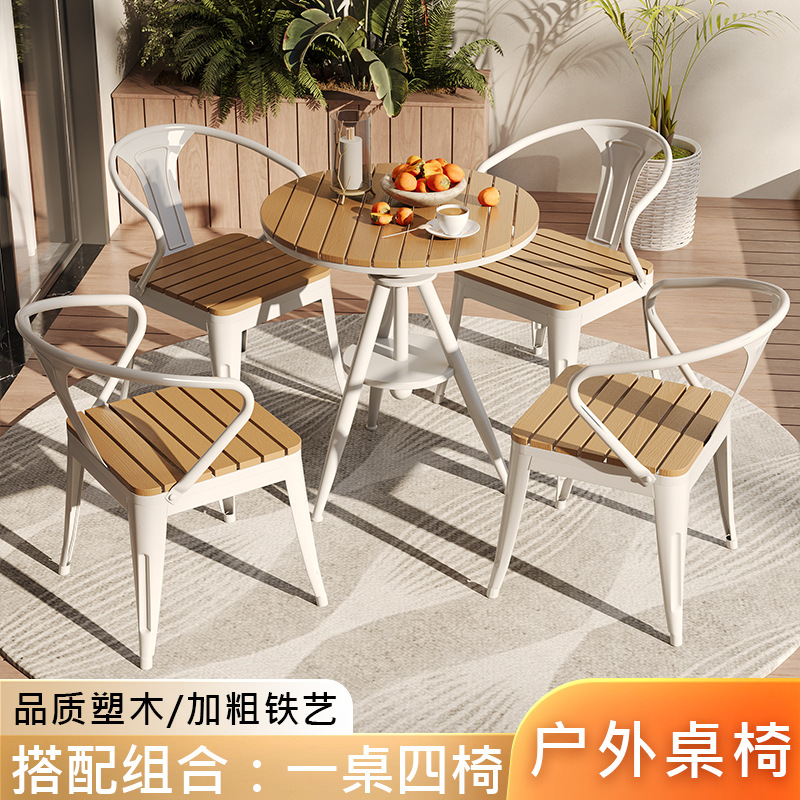 야외 레저 테이블 및 의자 야외 마당 부식 방지 목재 야외 식탁 및 의자 조합 가정용 식탁 발코니 광장 라운드 테이블