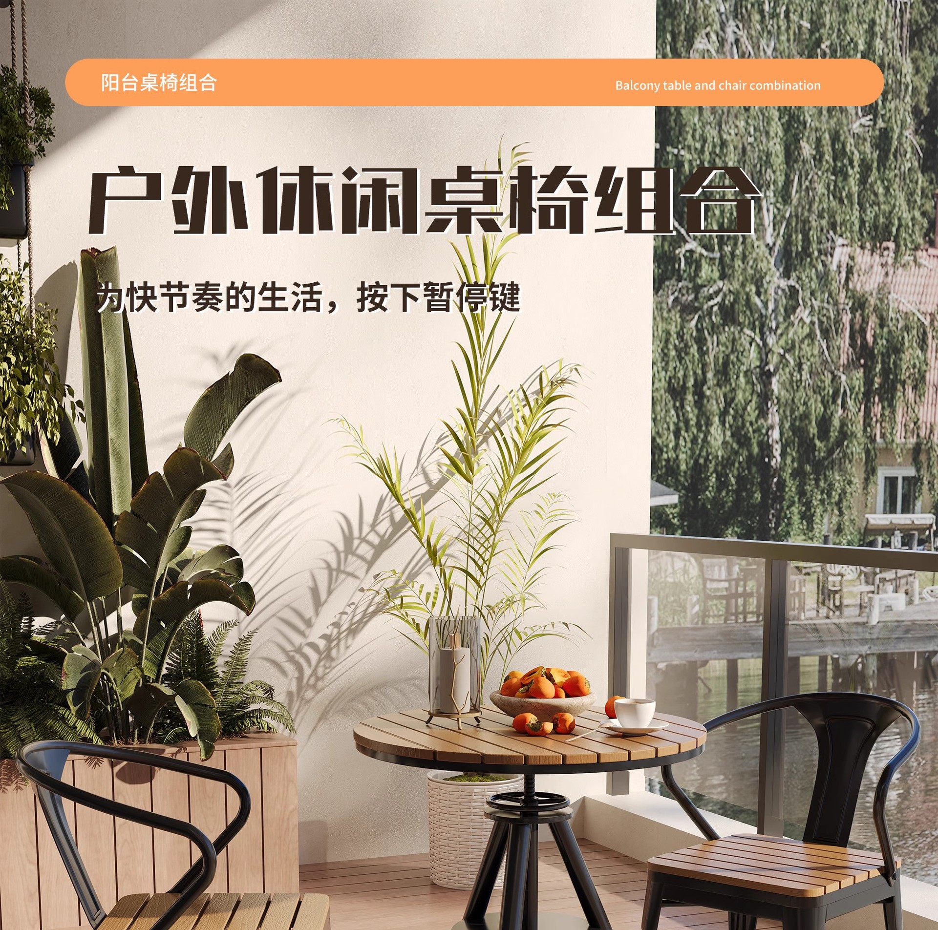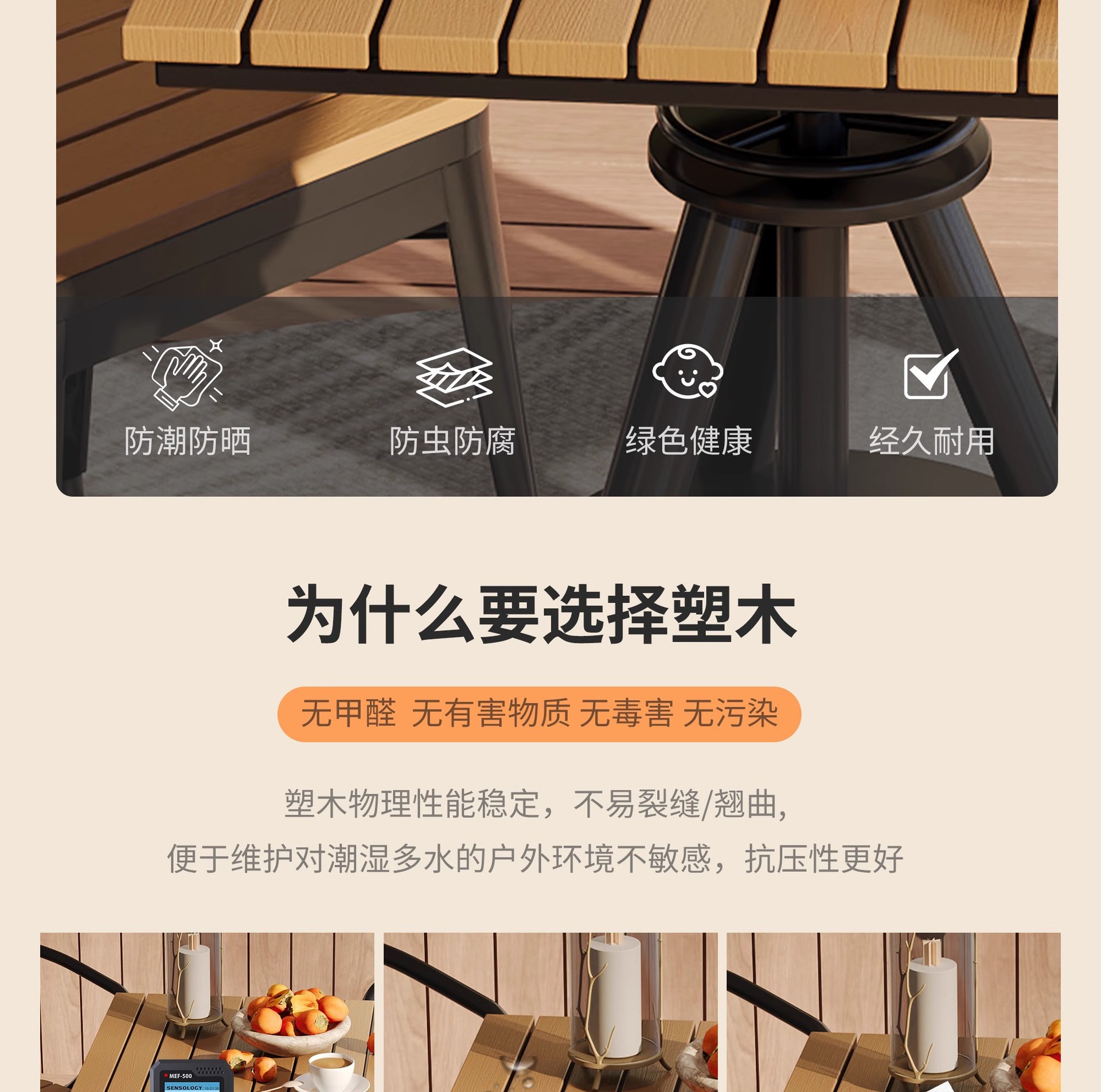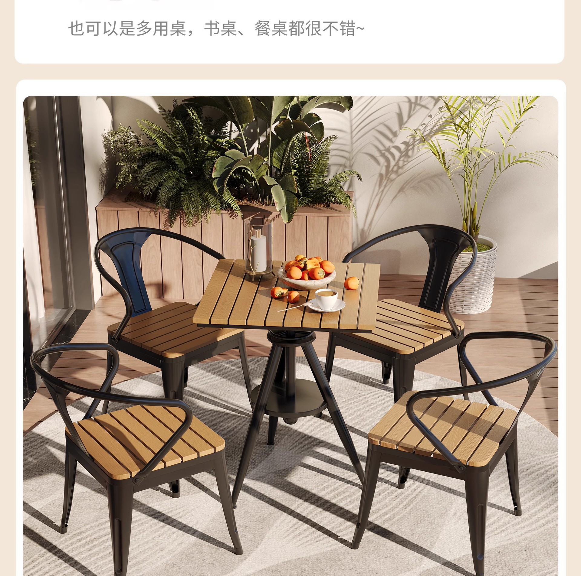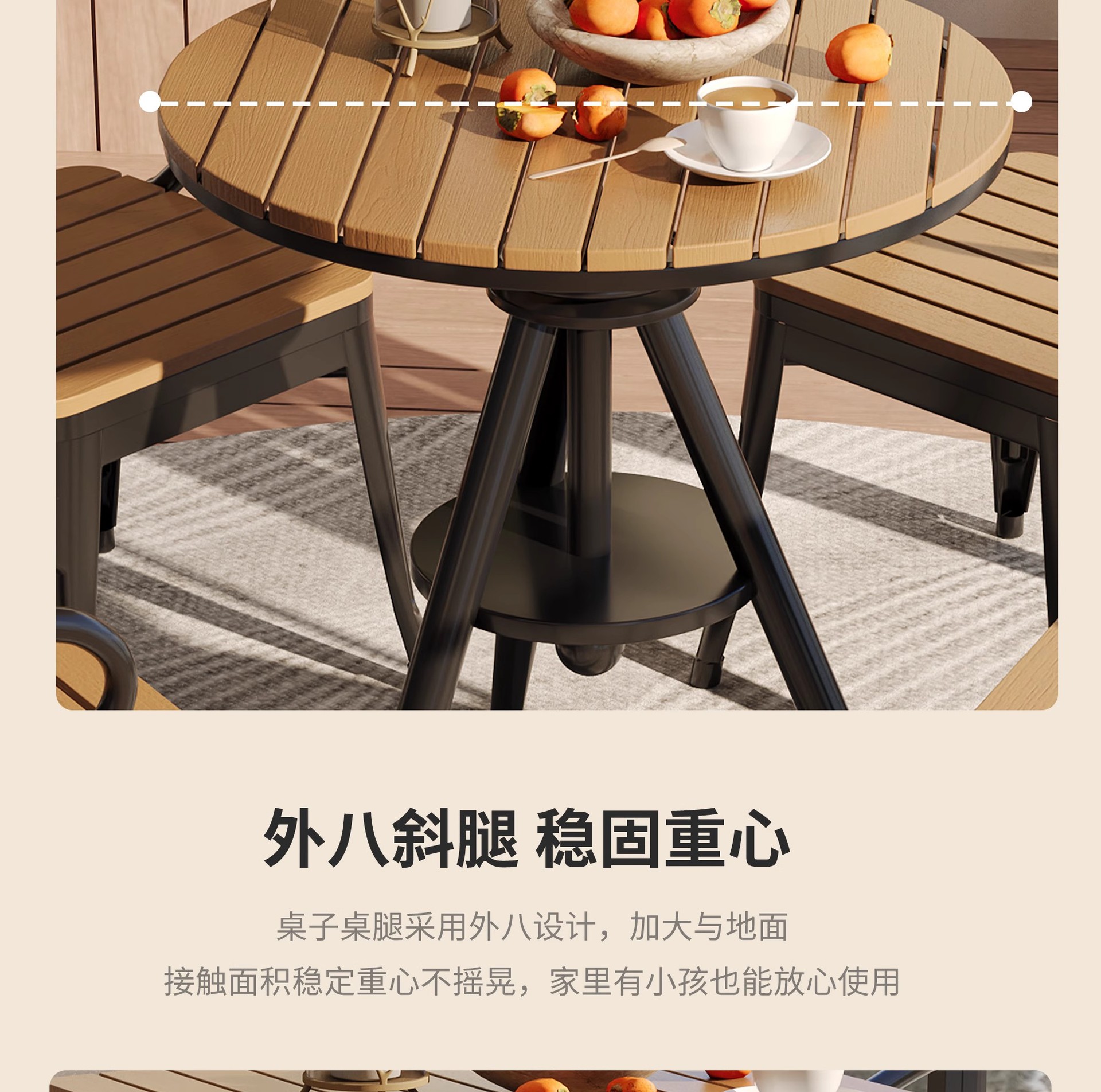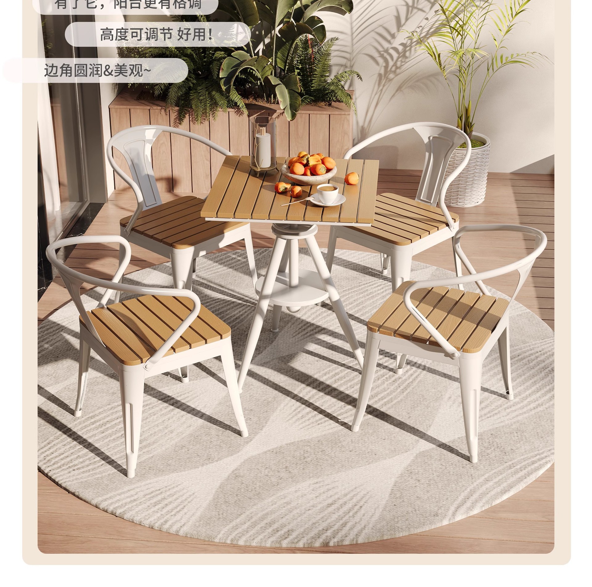 야외 레저 테이블 및 의자 야외 마당 부식 방지 목재 야외 식탁 및 의자 조합 가정용 식탁 발코니 광장 라운드 테이블