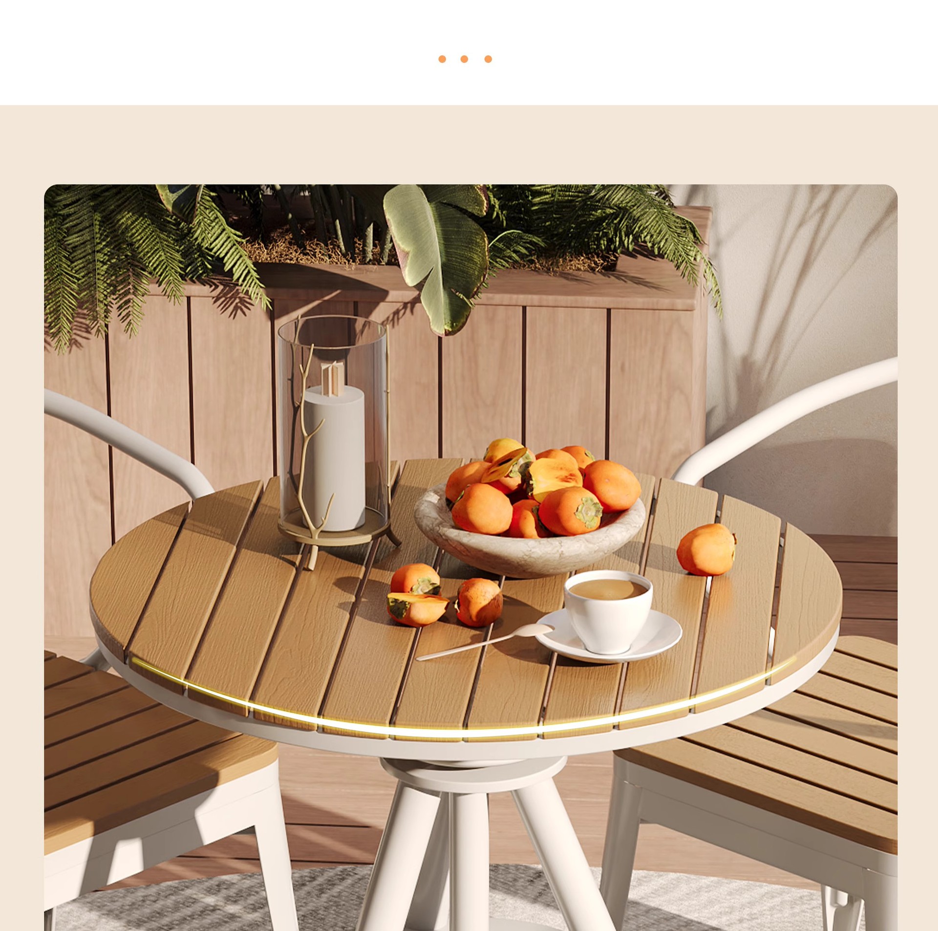 • 흰색 테이블과 의자 3개(원형 테이블 직경 70cm)