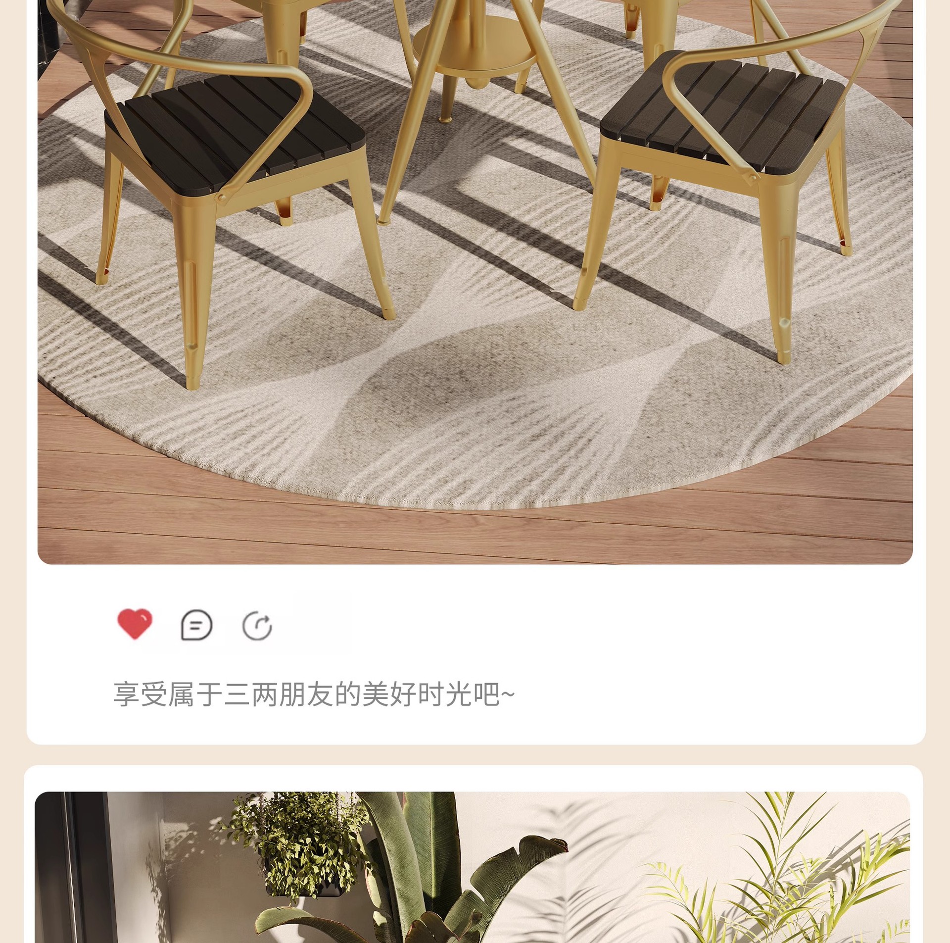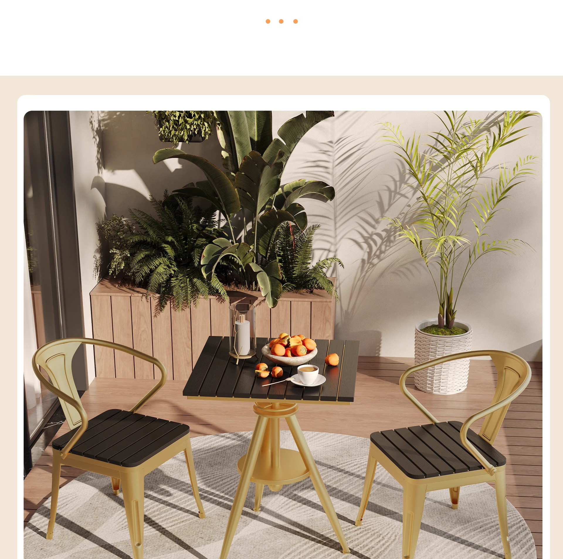 • 금색 테이블과 의자 3개(원형 테이블 직경 70cm)