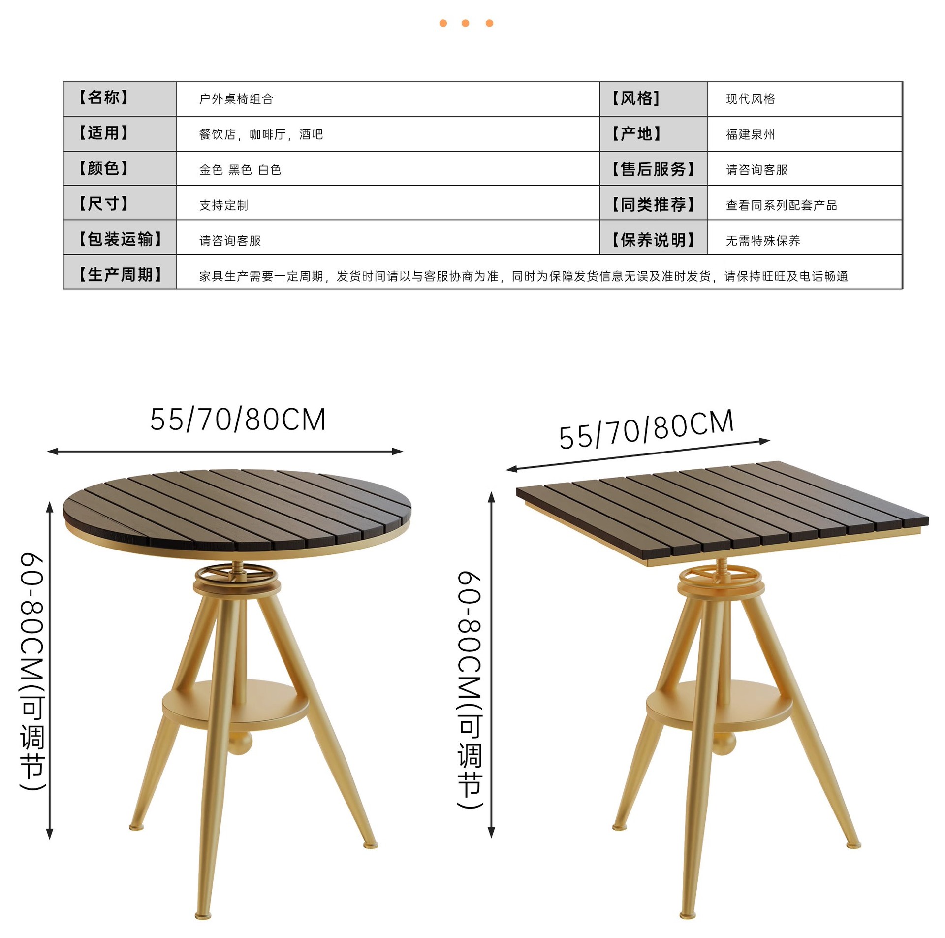 • 황금 원형 테이블: 직경 55*높이(60-80)