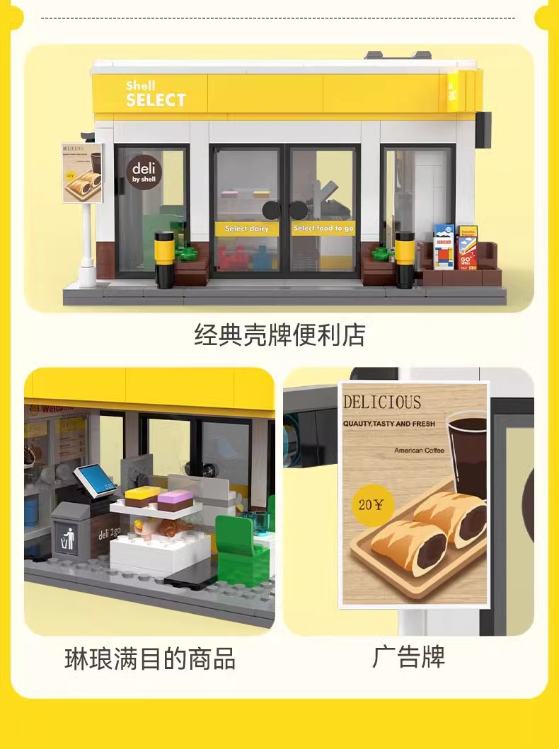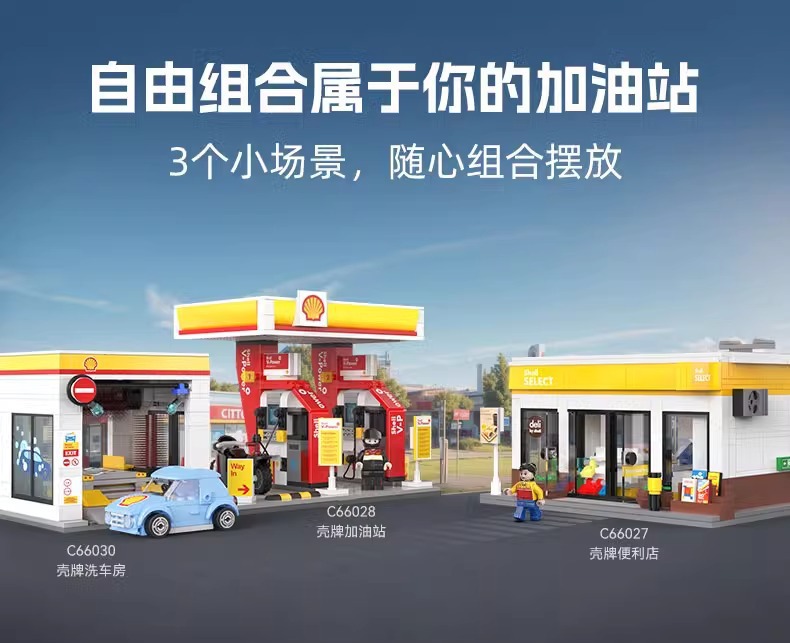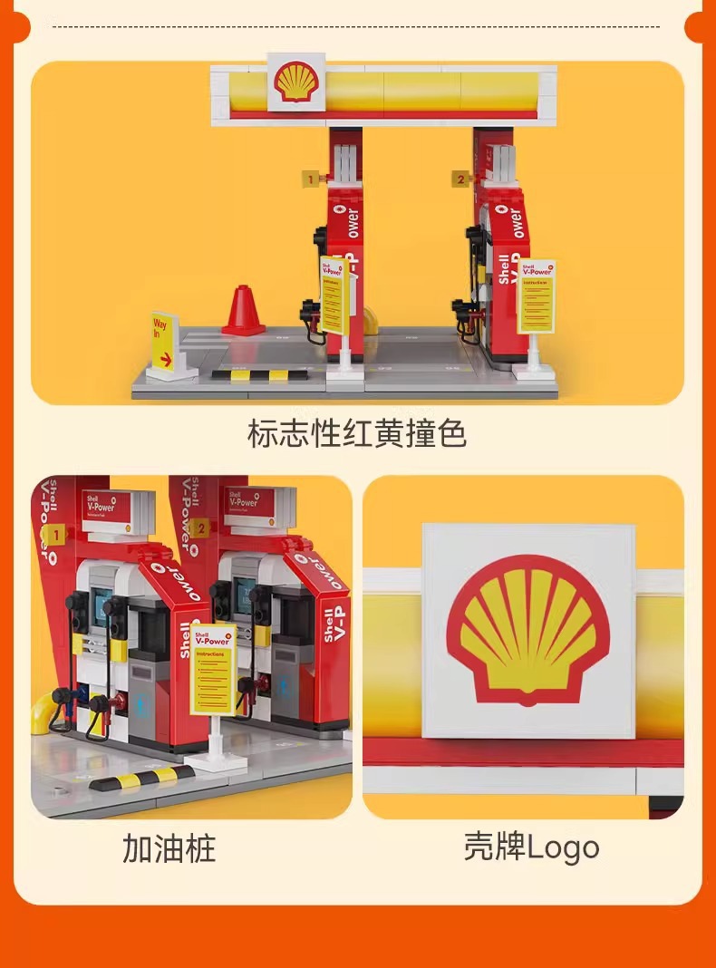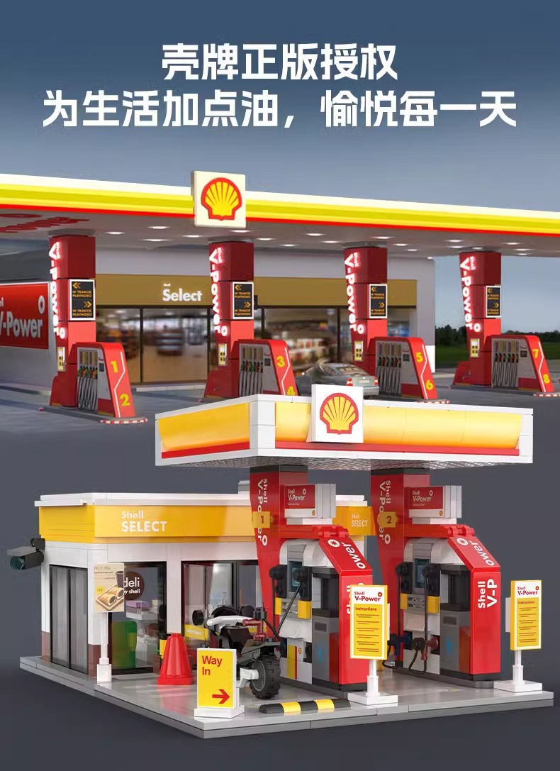 더블 이글 클래터 스트리트 뷰 시티 시리즈 쉘 주유소 빌딩 하우스 퍼즐 블록 모델 장난감 장식품스토어 가기