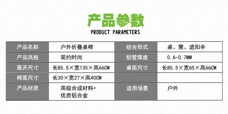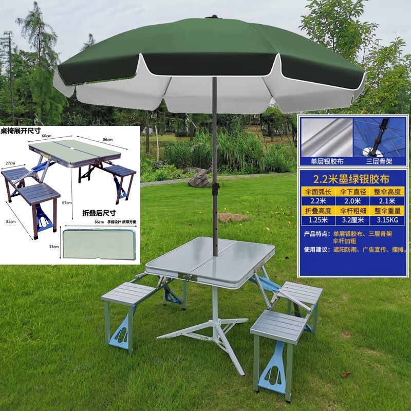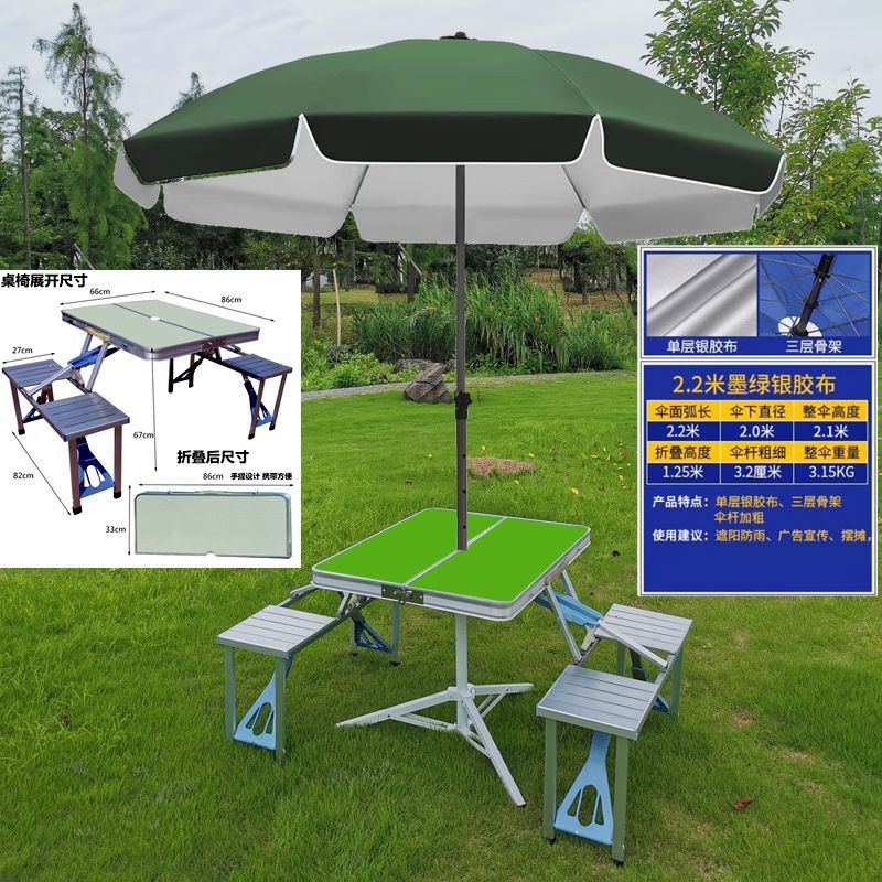 • 9918 실버 테이블 + 다크 그린 2.2m 실버 플라스틱 우산 + 앉은 자세