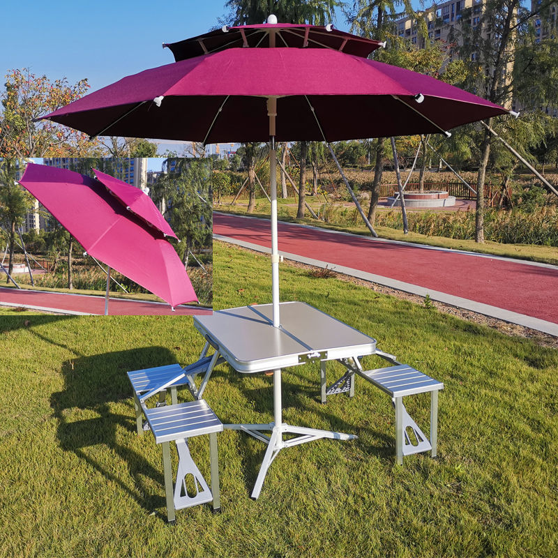• 9918 실버 테이블, 버건디 더블 레이어 우산 및 우산 시트
