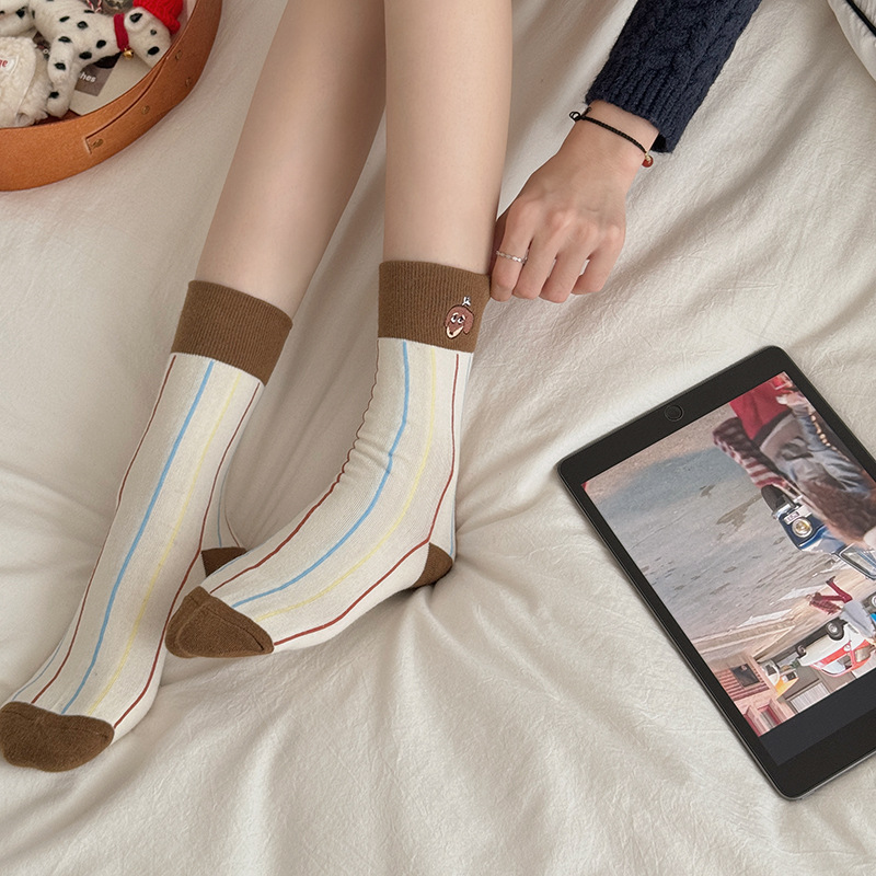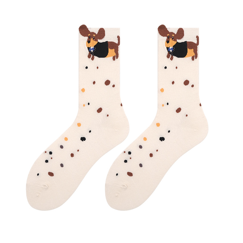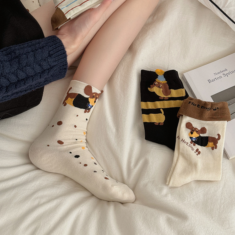 만화 강아지 양말 여성의 중간 길이 양말 가을과 겨울 단색 일본 스타일 귀여운 쿤 더미 양말 빈티지 다크 브라운 스타킹스토어 가기
