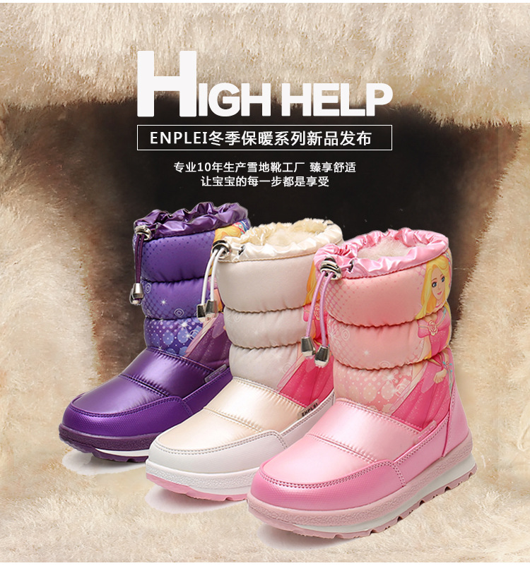 T010 러시아로 수출 겨울 어린이 중간 튜브 스노우 부츠 여성용 두꺼운 양모 대형 면화 대형 어린이 방수 공주 면화 신발스토어 가기