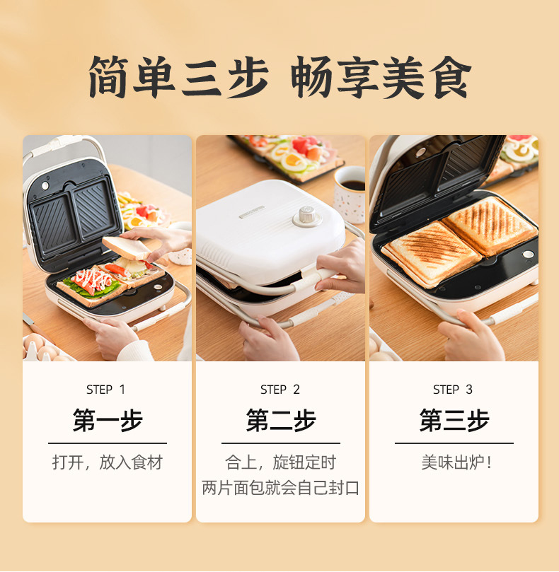 적당한 상자 샌드위치 기계 다기능 아침 식사 기계 HY-6602 가벼운 음식 작은 토스터 토스트 와플 메이커