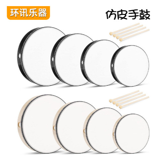 모조 가죽 탬버린 나무 색상 탬버린 Orff 악기 교육 보조 검은 탬버린 어린이 공연 반주 소품 탬버린