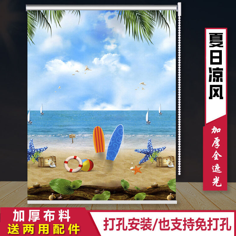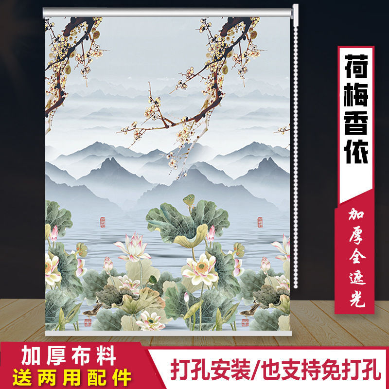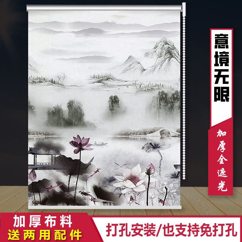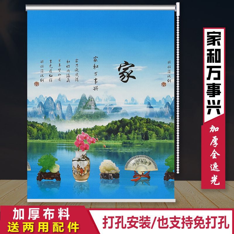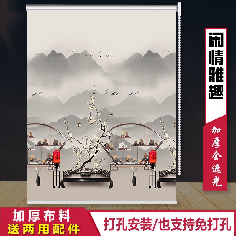 커튼 롤러 블라인드, 펀치 없는 설치, 풍경 리프팅 롤링 화장실 침실 블라인드스토어 가기