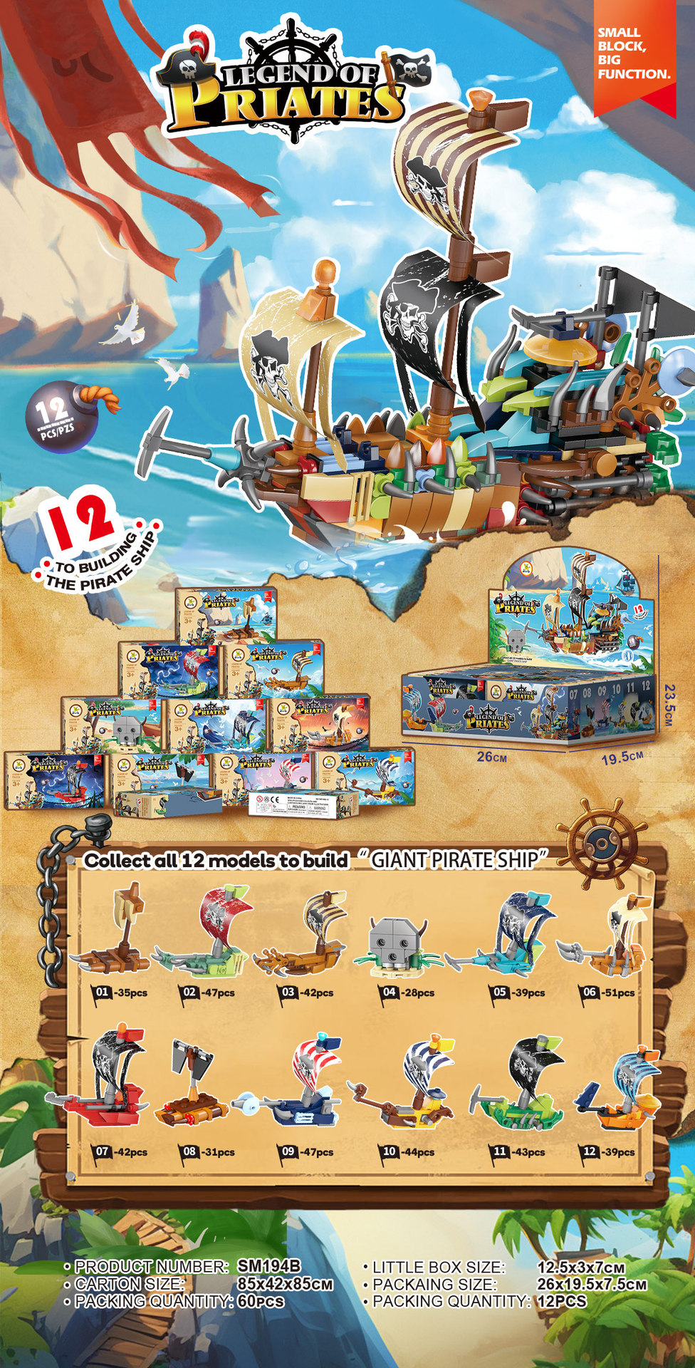새로운 해적 선박 조립 12-in -1 작은 입자 빌딩 블록 소년을위한 교육 장난감 호환 작은 입자 국경 선물