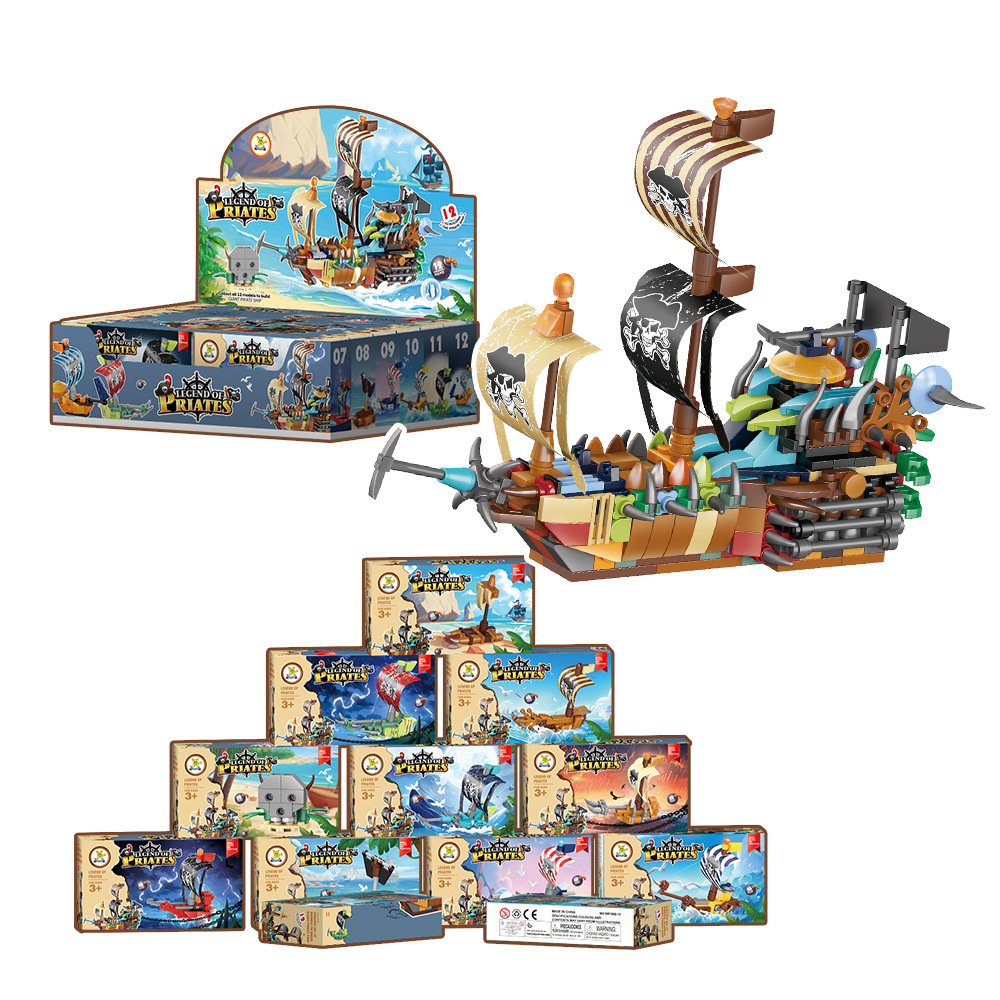 새로운 해적 선박 조립 12-in -1 작은 입자 빌딩 블록 소년을위한 교육 장난감 호환 작은 입자 국경 선물스토어 가기