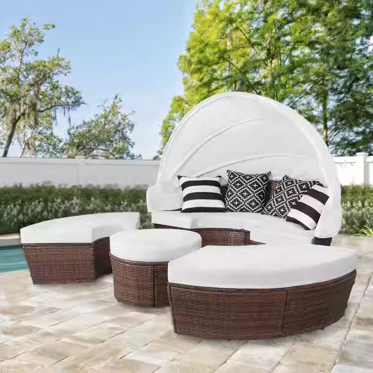 야외 라운지 풀 등나무 레저 야드 방수 태양 방지 해변 야외 일광욕 라운지 야외 안뜰 침대스토어 가기
