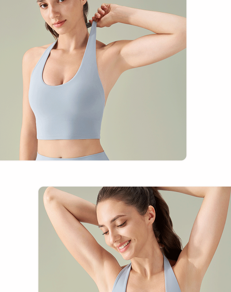 NF 라이크라 홀터넥 요가 조끼 여성 가을 탑 올인원 스포츠 브라(가슴 패드 포함) 피트니스 요가웨어스토어 가기