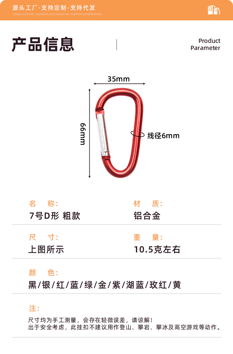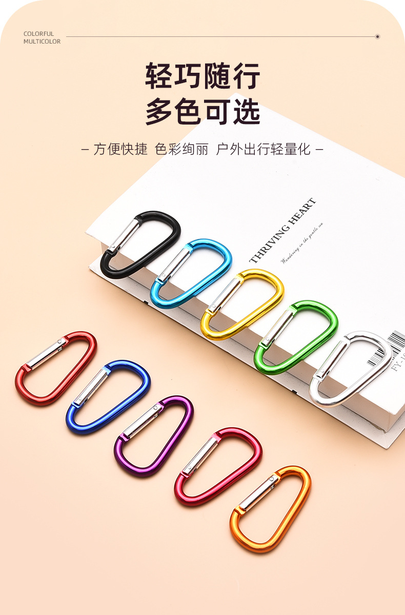 알루미늄 합금 7호 D형 10색 등산용 카라비너 스프링 버클 야외 캠핑 액세서리 두꺼운 배낭 열쇠 고리 도매