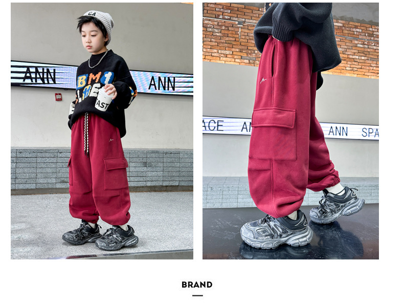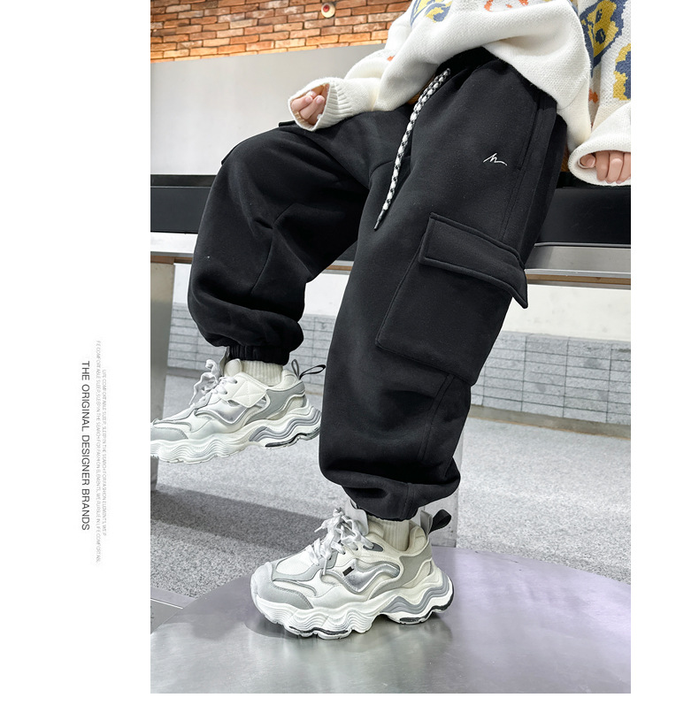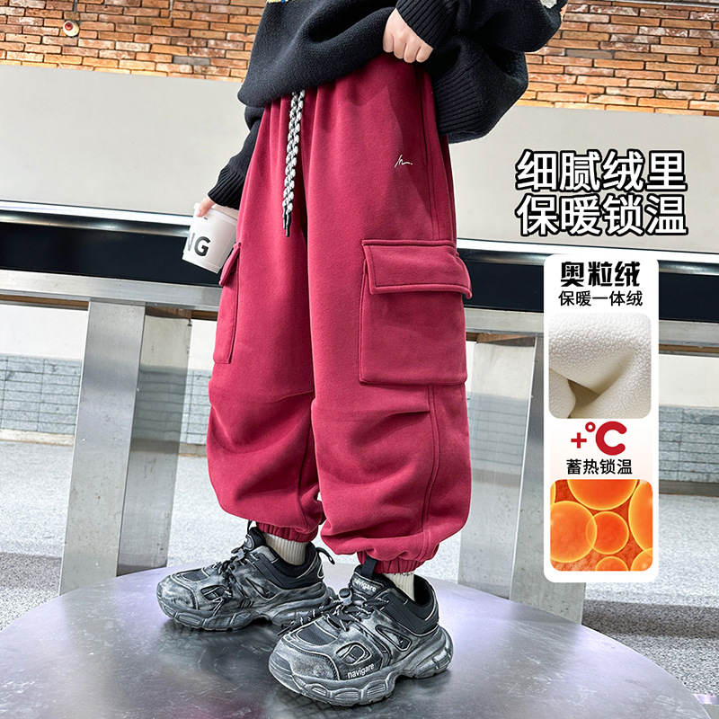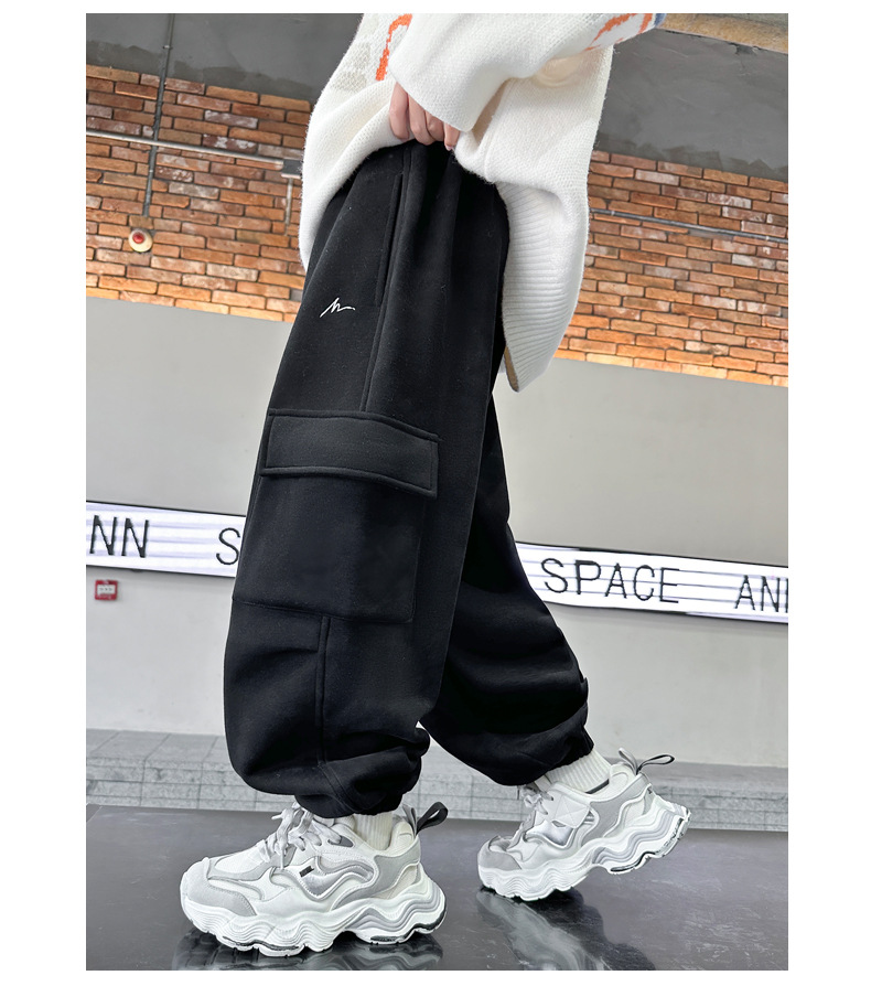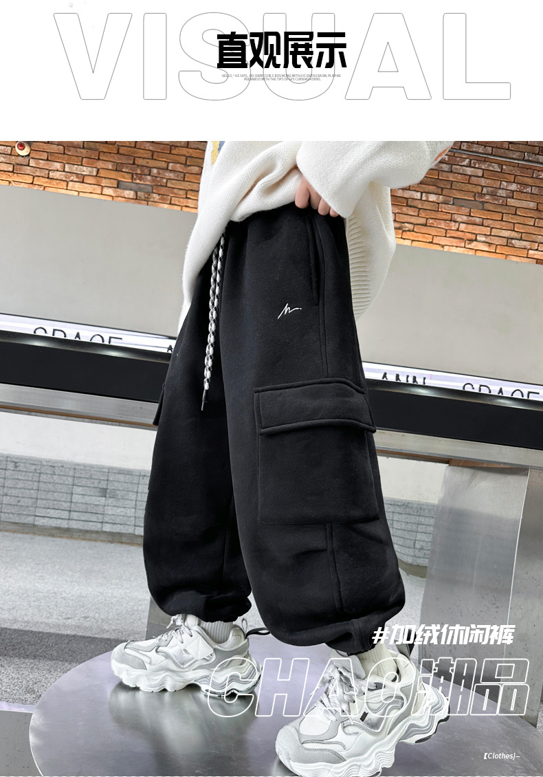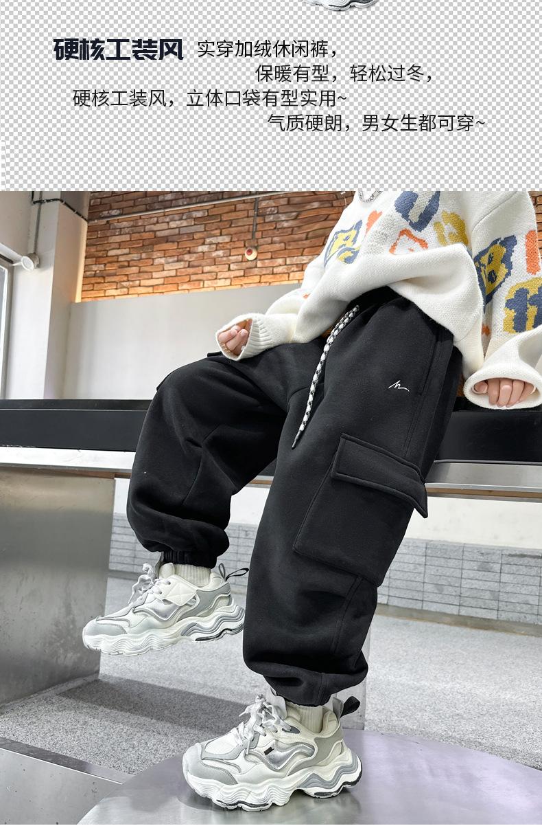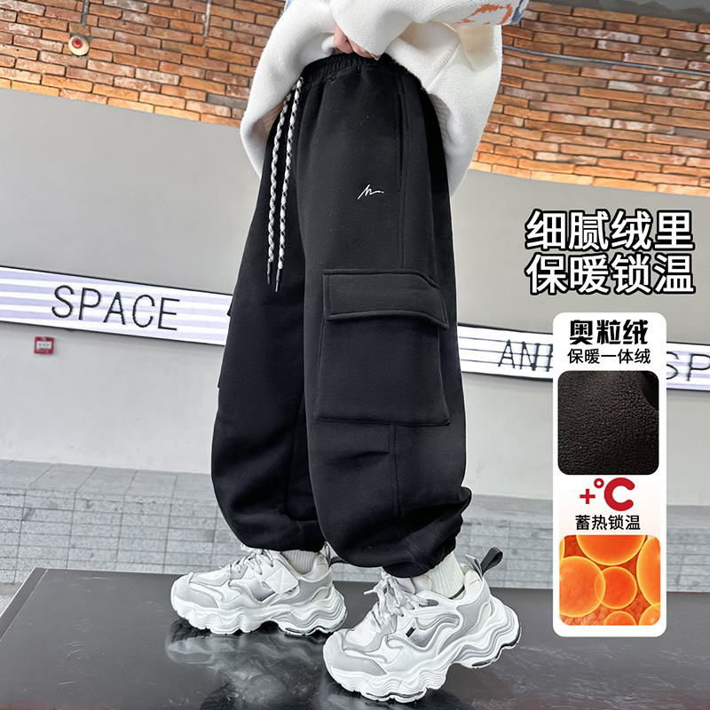 남학생 기모 주술 바지 가을과 겨울 2024 새로운 어린이 스포츠 바지 원피스 벨벳 대형 어린이 바지 세련된스토어 가기