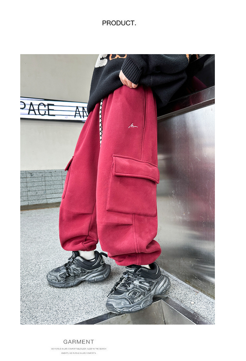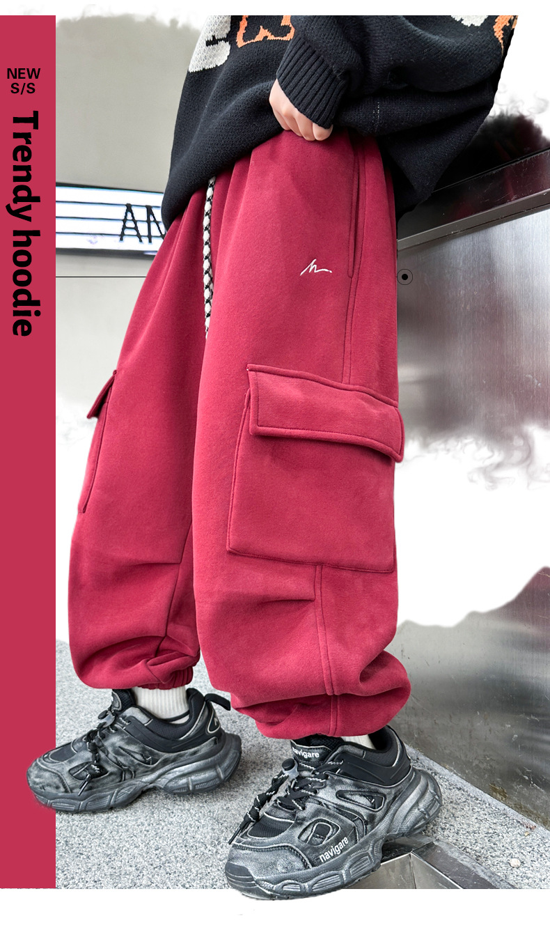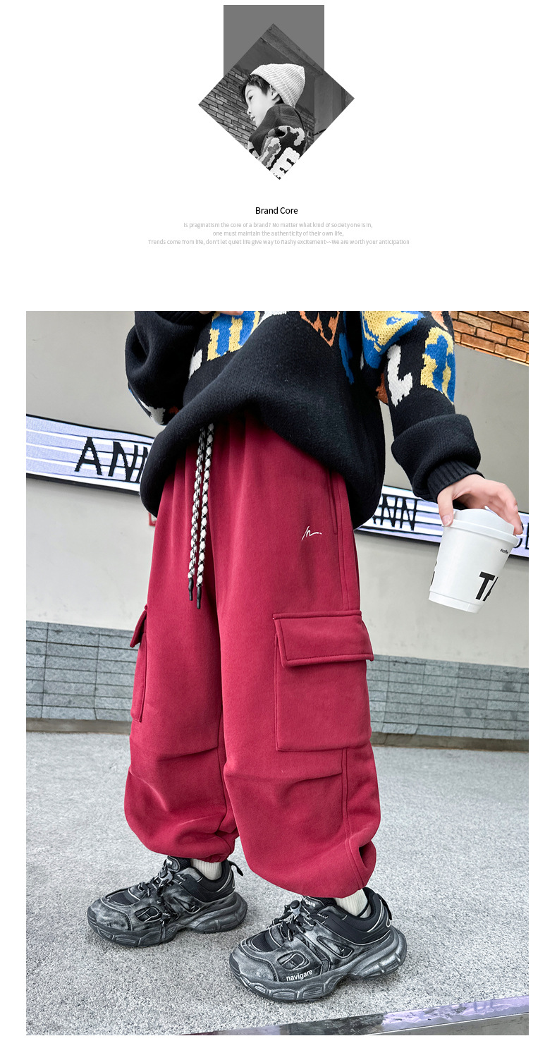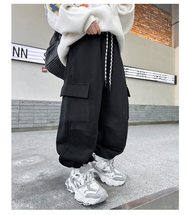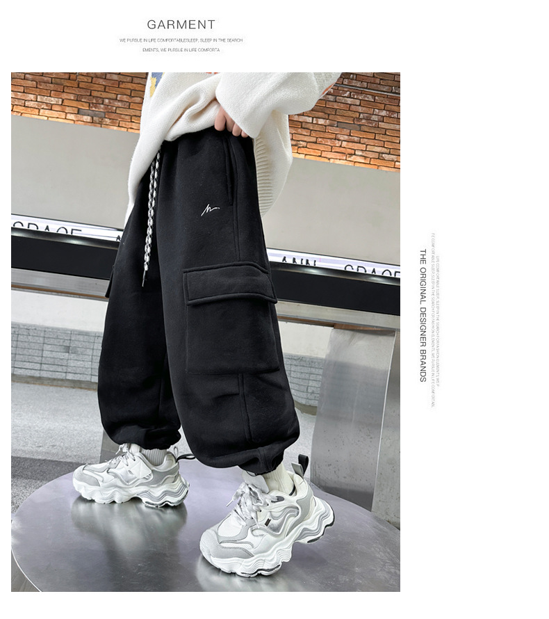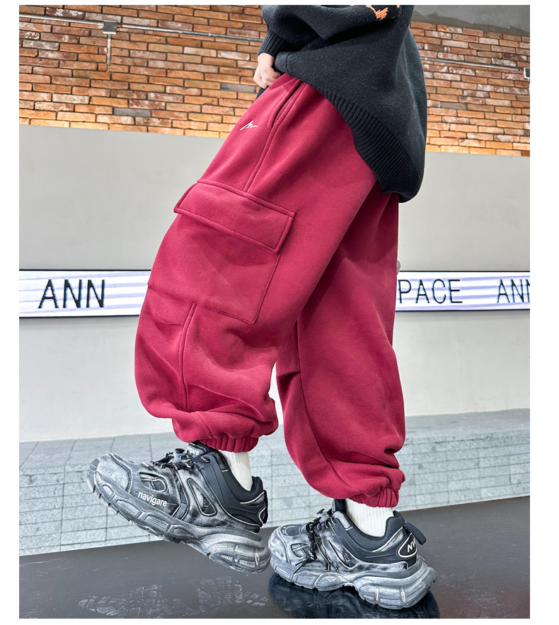 남학생 기모 주술 바지 가을과 겨울 2024 새로운 어린이 스포츠 바지 원피스 벨벳 대형 어린이 바지 세련된스토어 가기