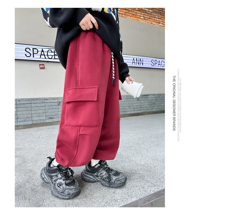남학생 기모 주술 바지 가을과 겨울 2024 새로운 어린이 스포츠 바지 원피스 벨벳 대형 어린이 바지 세련된