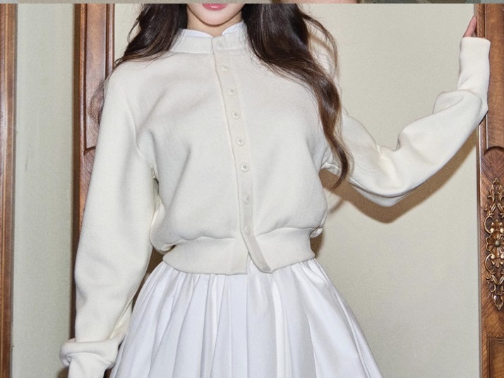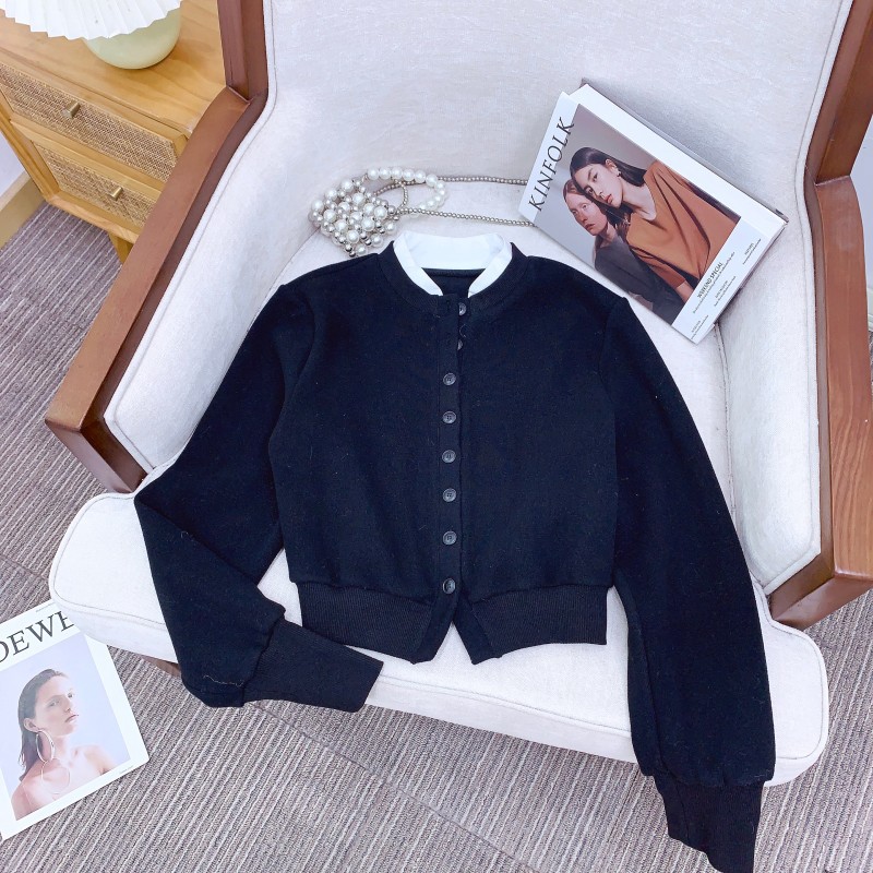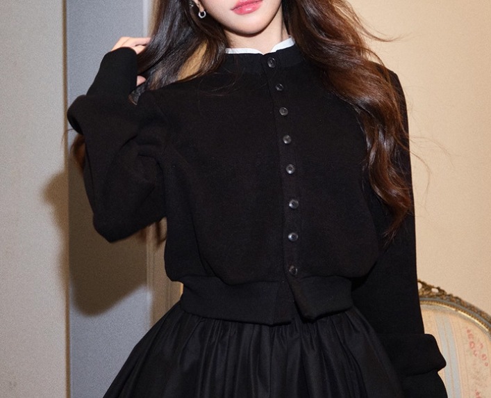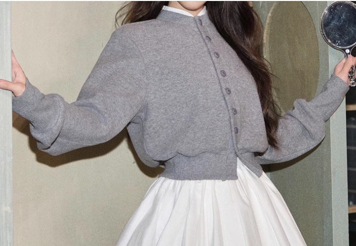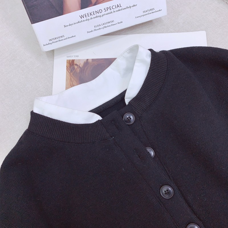 재고 아베넴 스티칭 니트 재킷/디자인 센스 라운드 넥 싱글 브레스트 니트 카디건 재킷 탑 여성