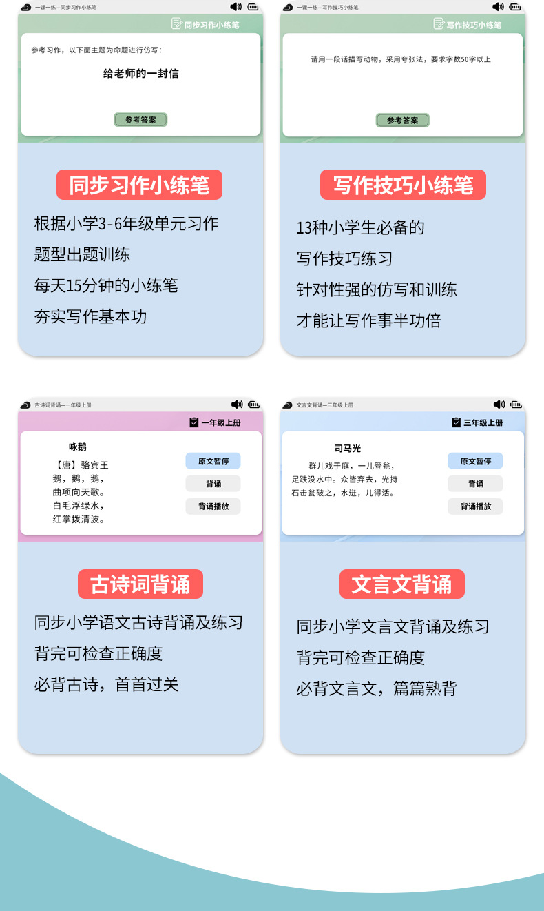 중국어 학습 및 훈련 기계 융합 조기 교육 읽기 기계 학생들은 동기 학습 및 훈련 병음 고대시 쓰기 구성 이해