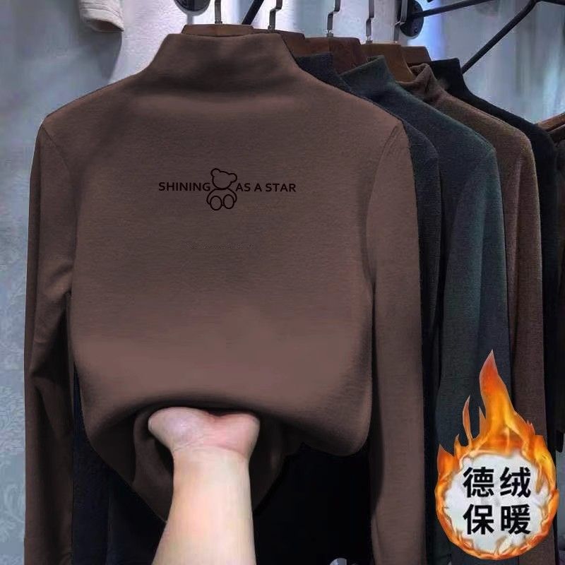 여아용 가을 겨울 하프 터틀넥 2025 신상 아동용 상의 독일산 두꺼운 기모 안감 티셔츠스토어 가기