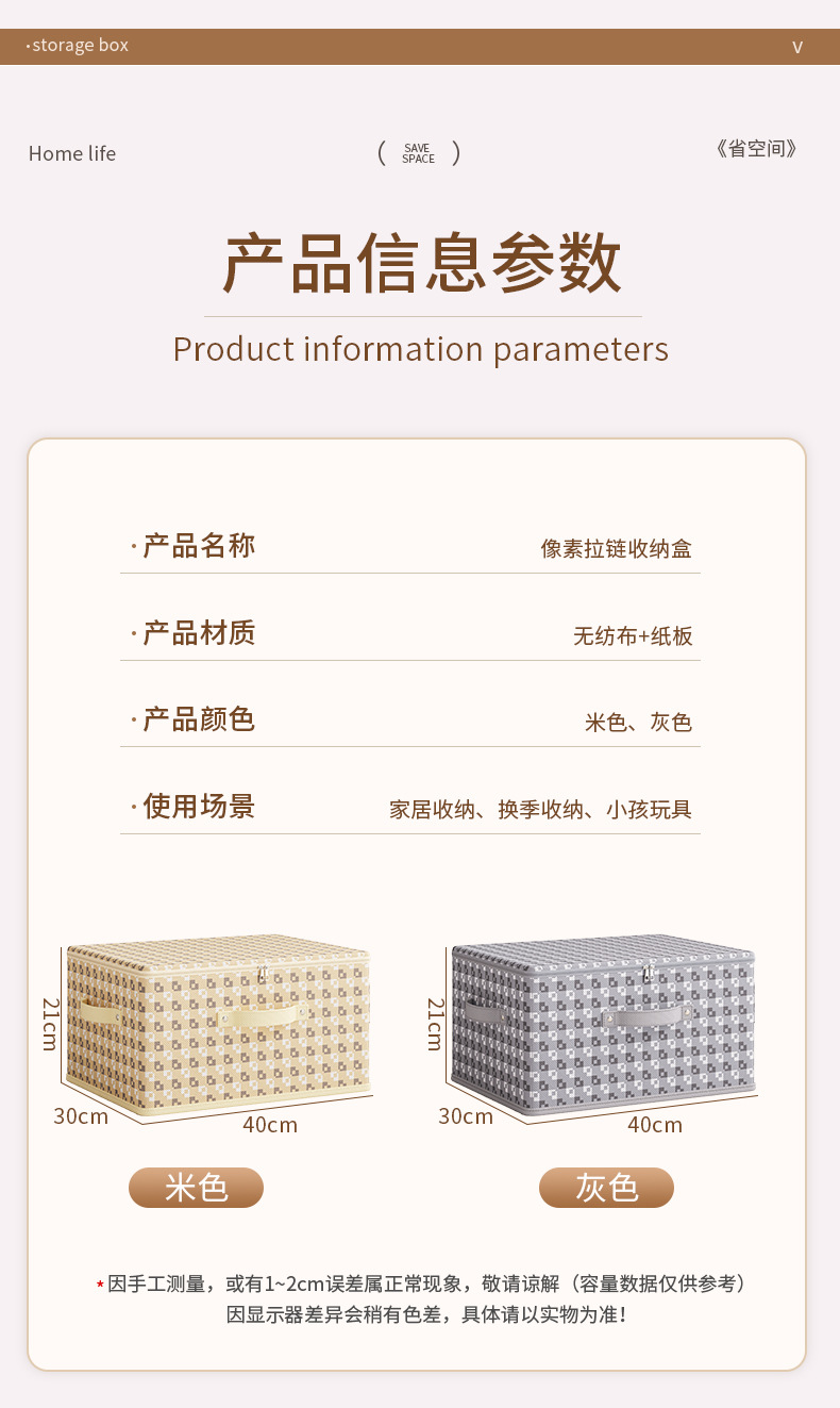 국경 간 부직포 픽셀 지퍼 보관 상자 가정용 의류 보관 상자 기숙사 접이식 보관 보관 보관 상자