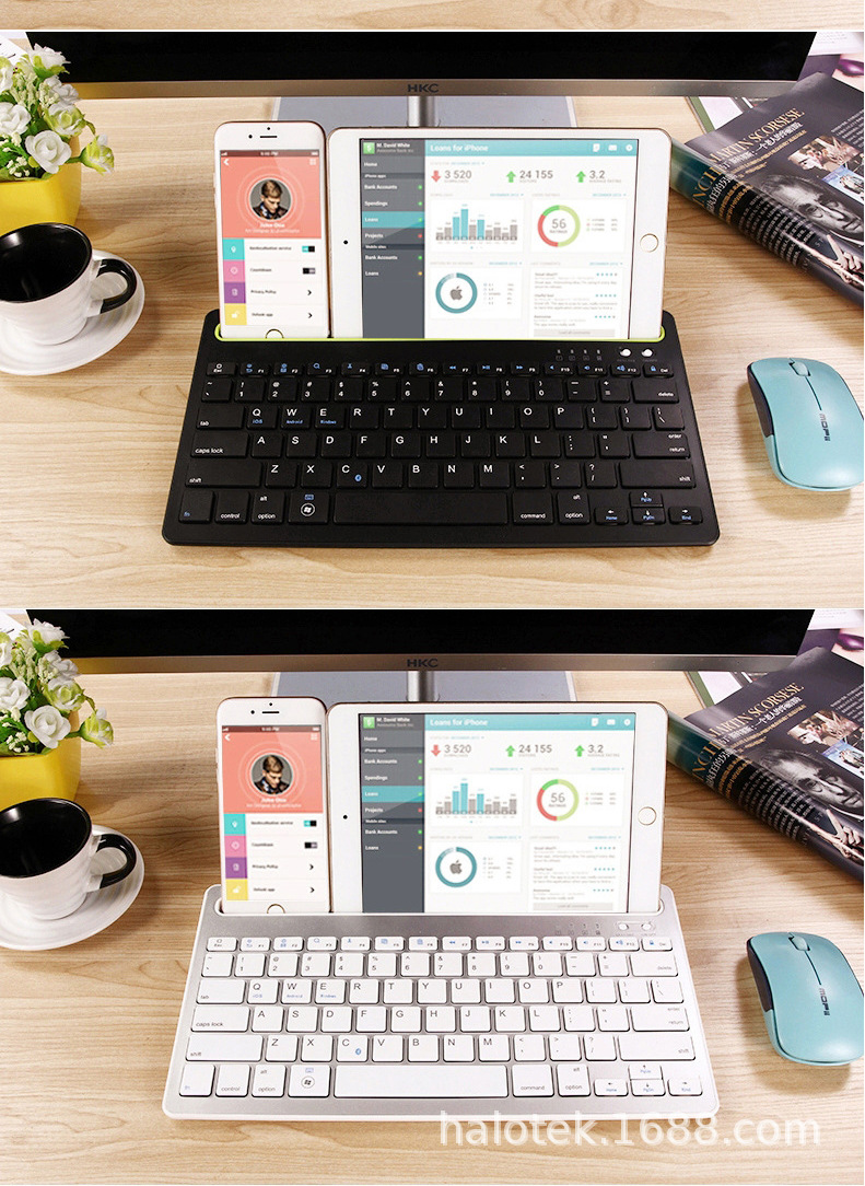 카드 슬롯 컴팩트 듀얼 채널 미니 휴대용 충전식 휴대 전화 터치 패드 태블릿 블루투스 RK908 키보드스토어 가기