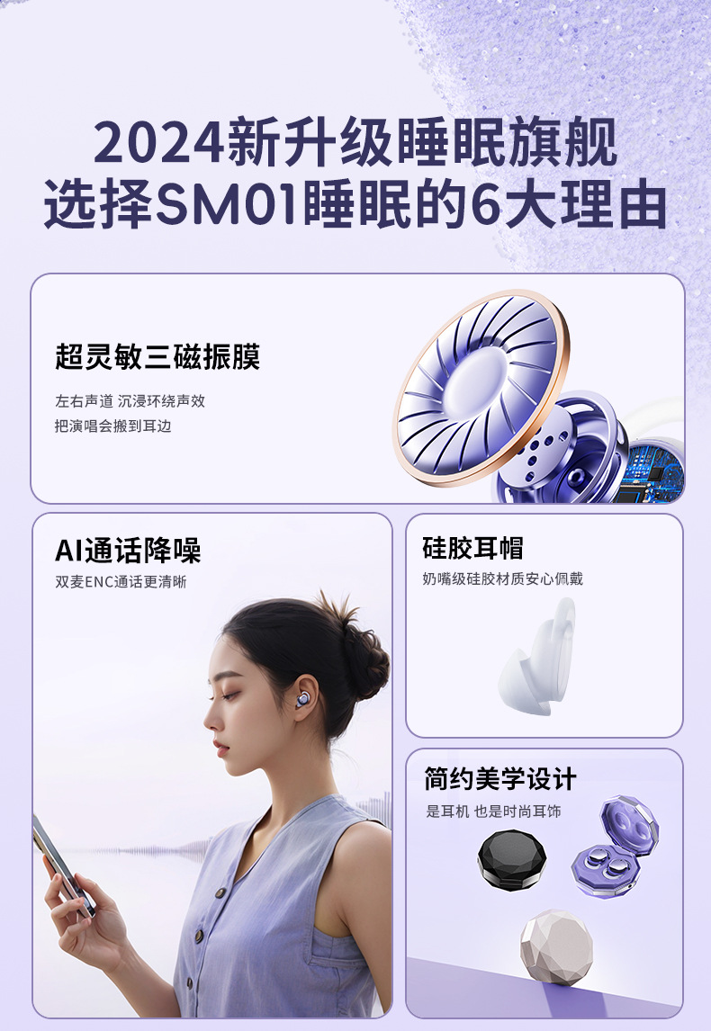 국경 간 새로운 귀 Sleep01 수면 미니 소형 무선 블루투스 헤드셋 긴 수명 소음 감소