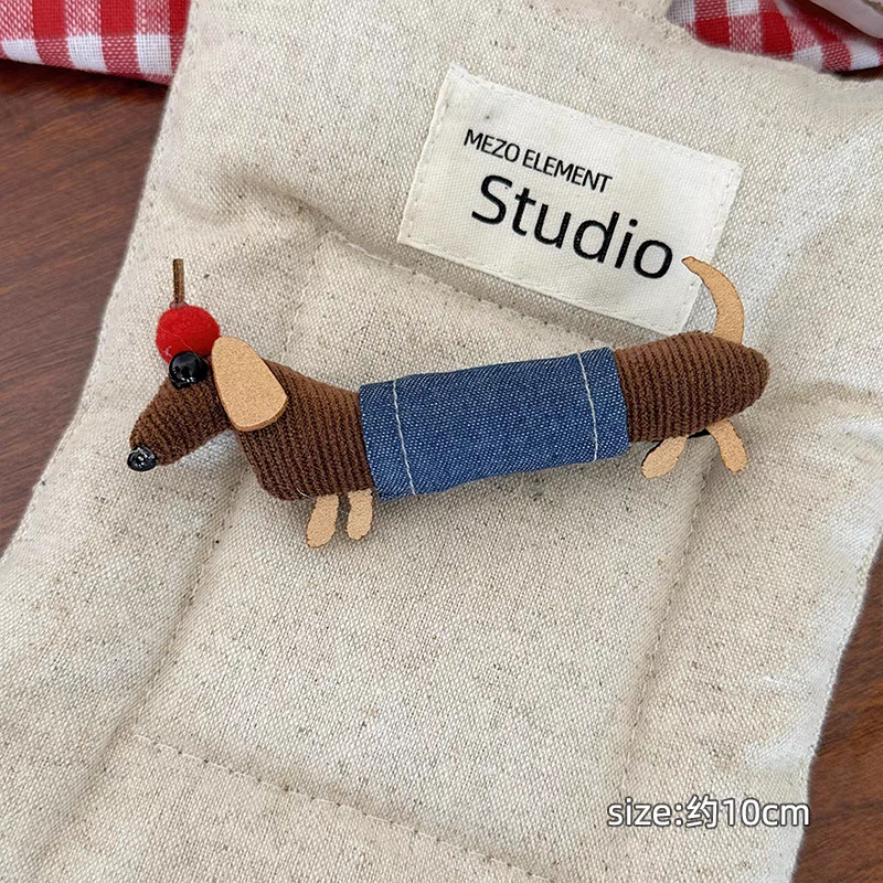 • 33#다크 블루 데님 브라운 닥스훈트 덕빌 클립