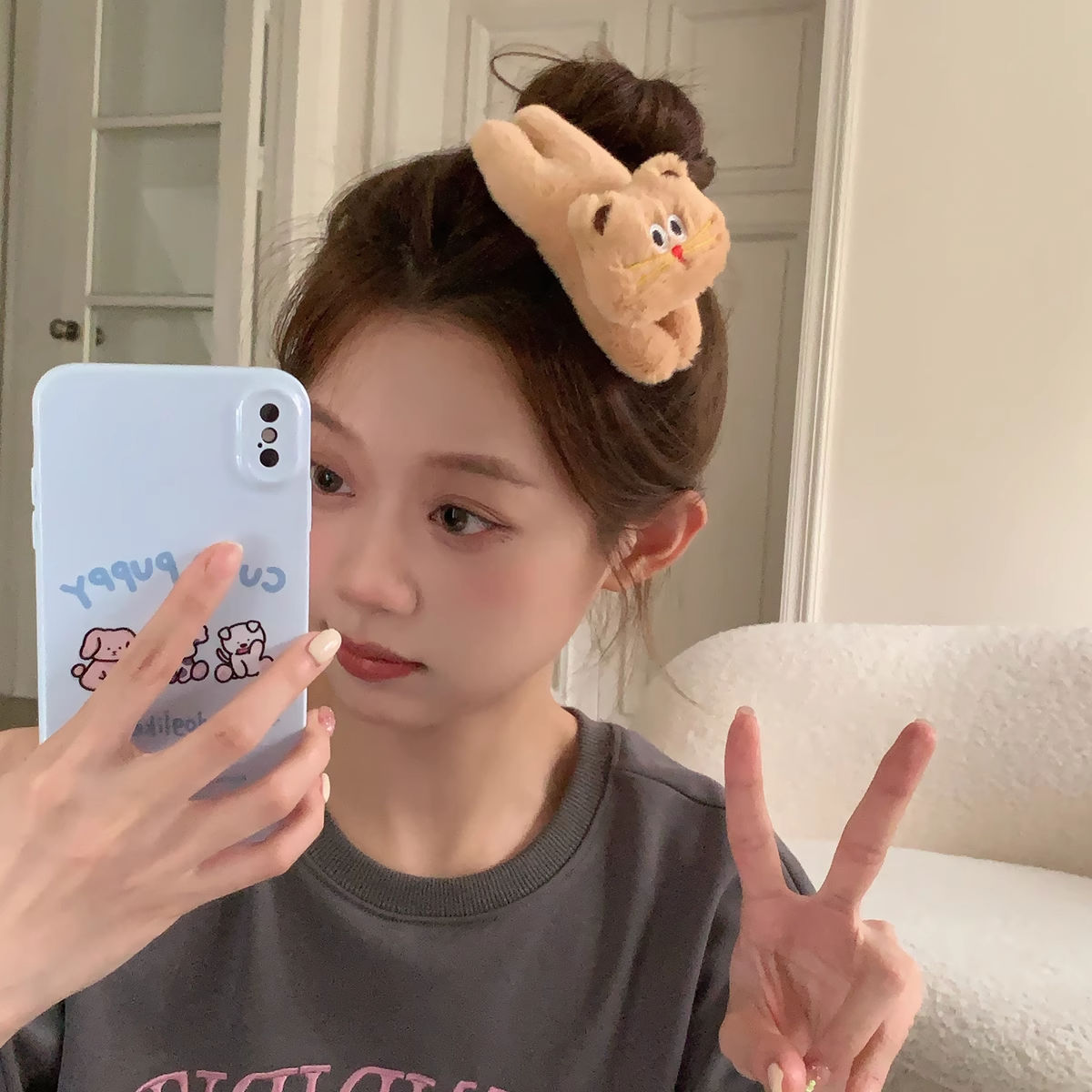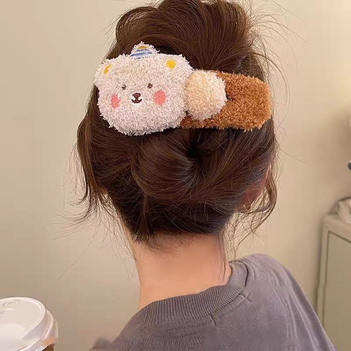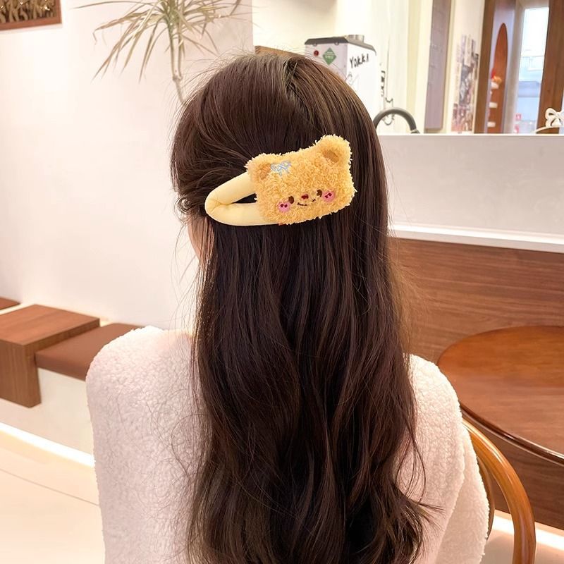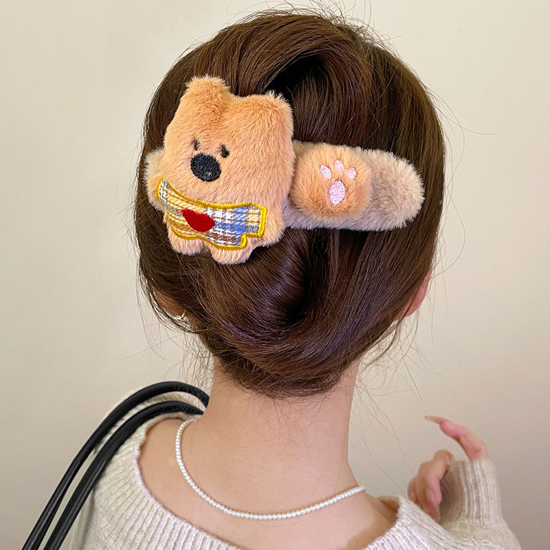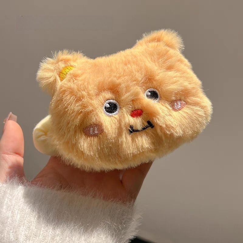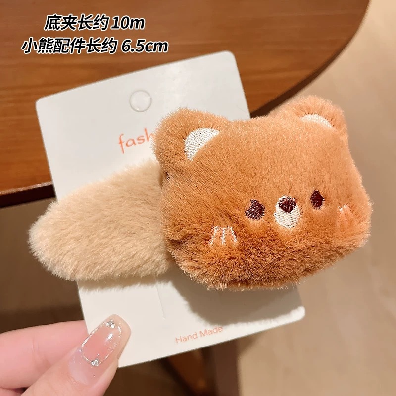 • 8#카키 스마일캣 플러시 덕빌 헤어클립 12cm